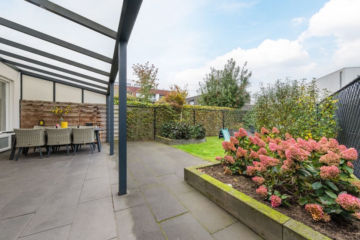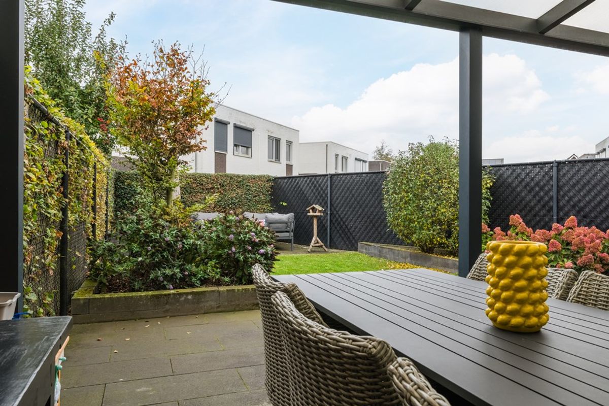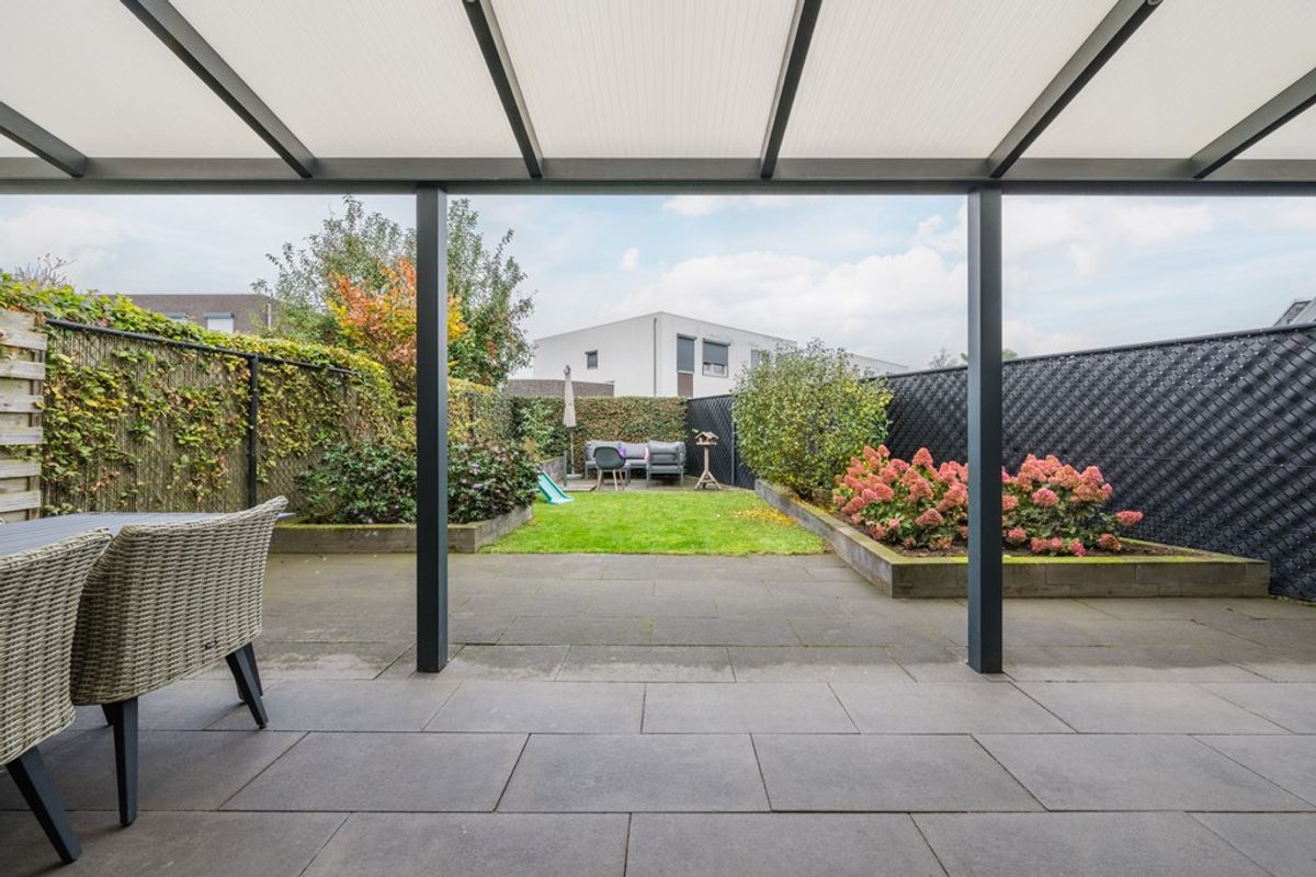 De achtertuin ligt op het noordwesten en biedt veel privacy. Dankzij het terras, de nette erfafscheiding en de overkapping van circa 20 m² is het hier heerlijk vertoeven, van ontspannen zomermiddagen tot gezellige avonden met vrienden. Via de overkapping is ook de garage te bereiken.