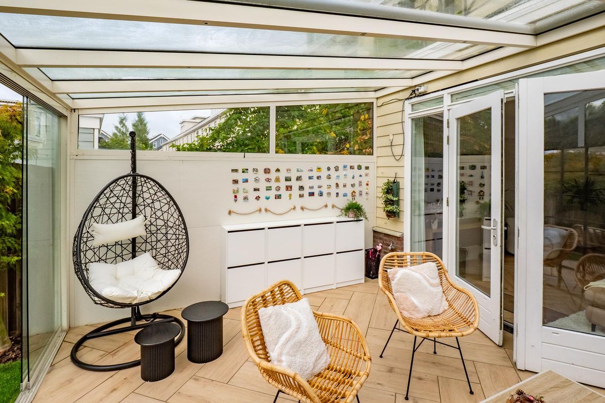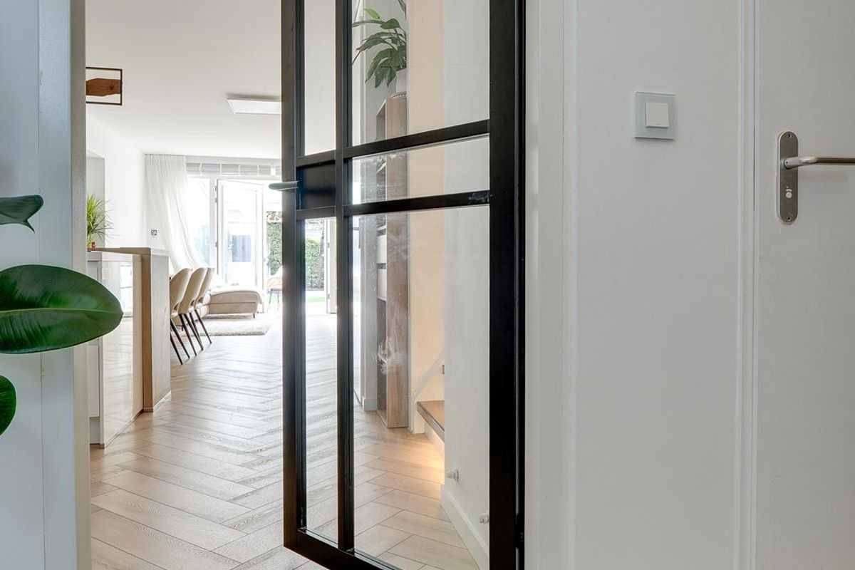 De begane grond is in 2023 volledig aangepakt met een nieuwe vloer, strak stucwerk, vernieuwde trap en toegang tot de fraaie overkapping aan de tuinzijde, waardoor binnen en buiten mooi in elkaar overlopen.