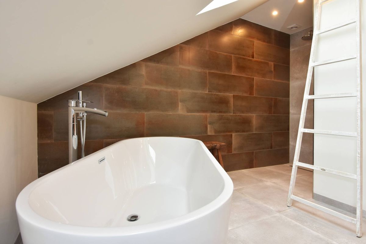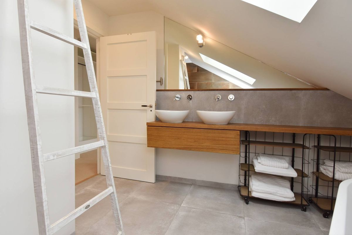 The upper floor offers two generously sized double bedrooms with fitted wardrobes and a luxurious master bathroom with a shower and bath. A separate family bathroom/shower room with a washing machine, dryer, and separate toilet.