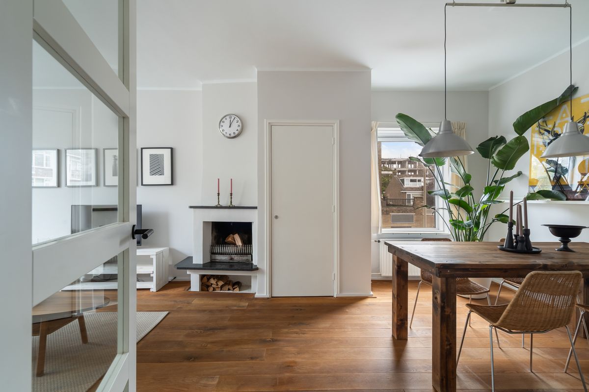 At the front of the apartment, you’ll find the bright living room, with large windows that let in plenty of natural light and offer a lovely view over the lively Theresiastraat. The space is large enough to accommodate both a comfortable sitting area and a dining area.