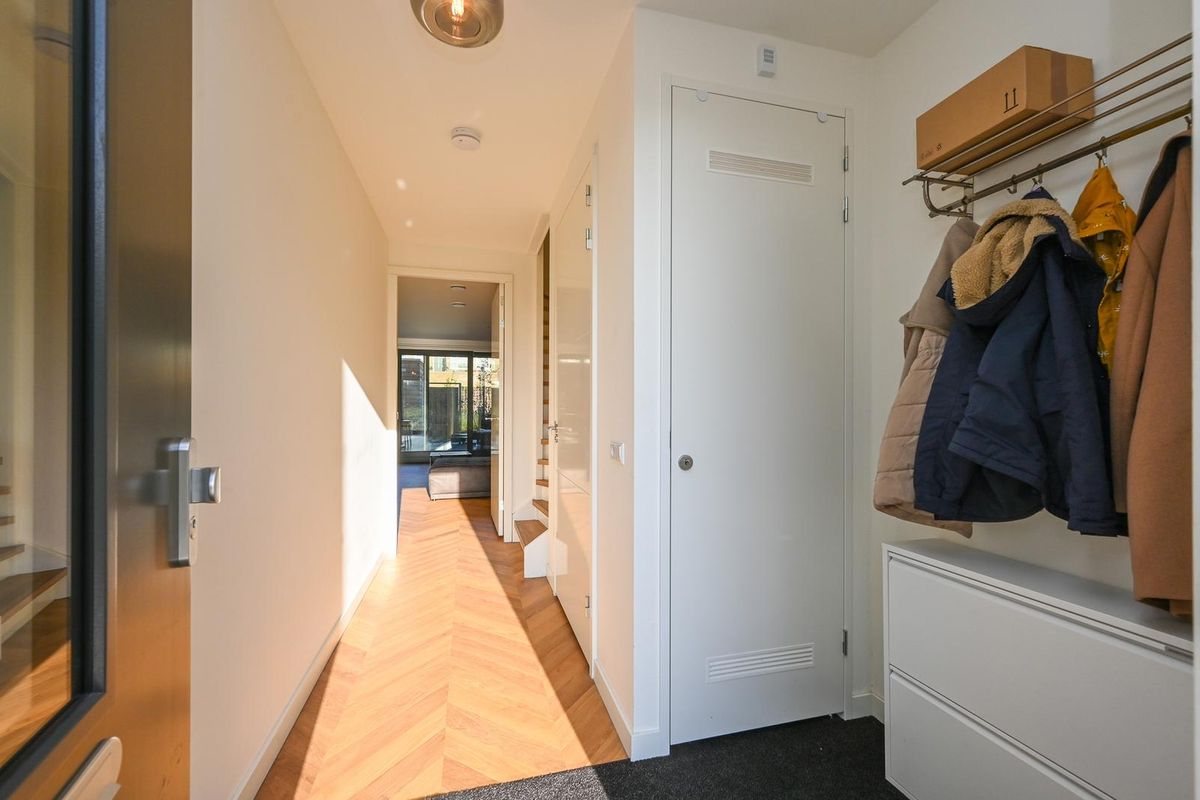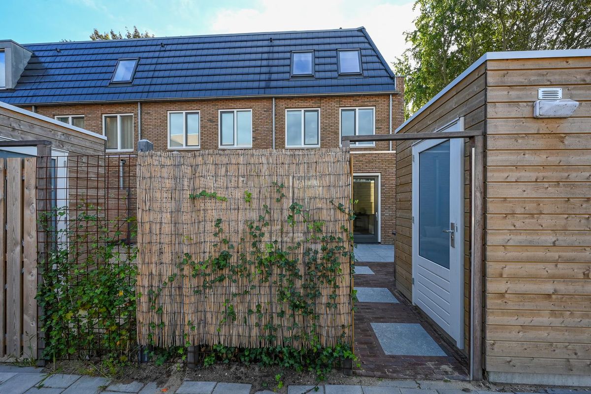 Aan de achterzijde zorgt een grote schuifpui voor een prachtig zicht op de tuin en een overvloed aan daglicht, ook in de winter is het hier heerlijk licht. De fraai aangelegde achtertuin biedt volop zon, rust en privacy en is voorzien van een ruim terras, een groenstrook, een praktische berging en een handige achterom naar het gemeenschappelijke parkeerterrein met een eigen parkeerplaats direct achter de woning.