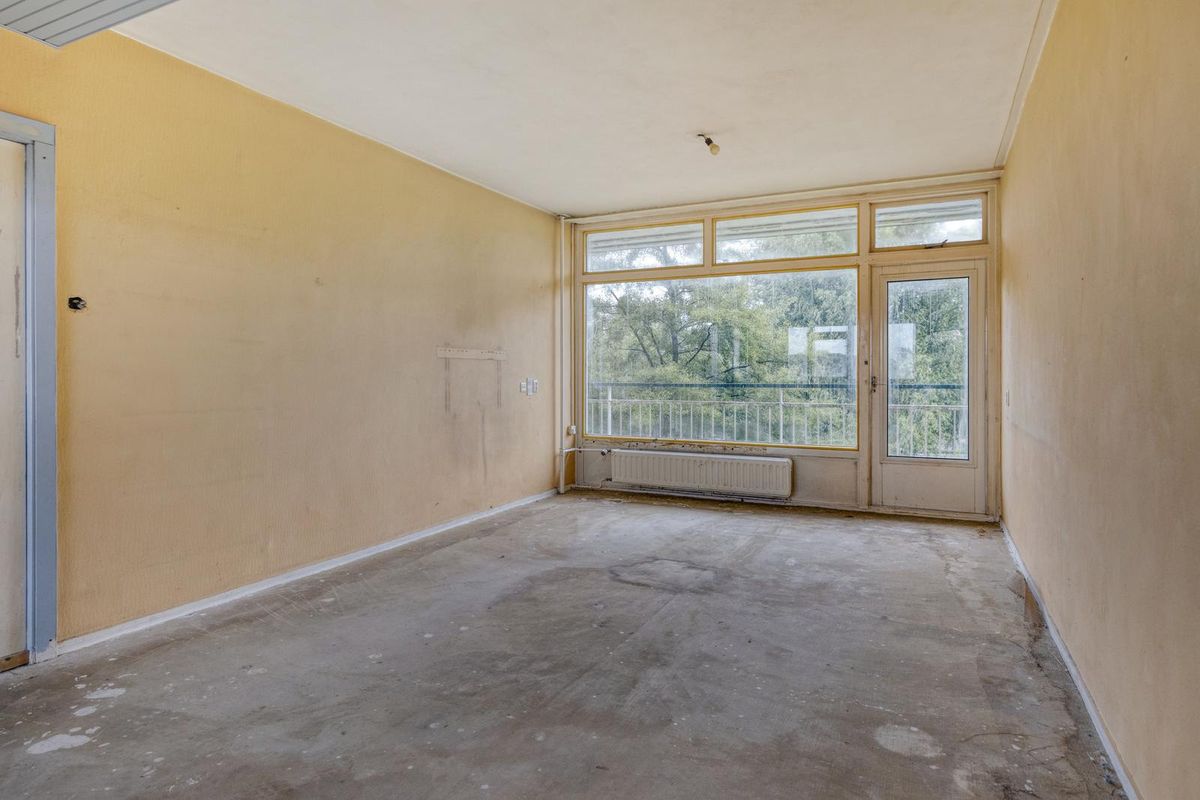 * Woonkamer aan de achterzijde met veel lichtinval, behangwanden, een gestukt plafond, een open verbinding met de eetkamer aan de voorzijde en een deur naar het balkon.