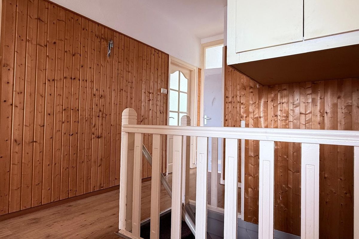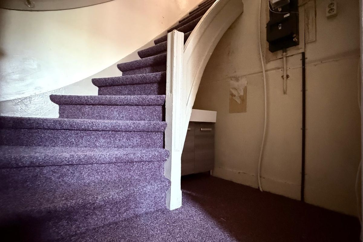 Open portiek, trap naar eerste verdieping, entree woning, binnentrap, hal, berging, meterkast;