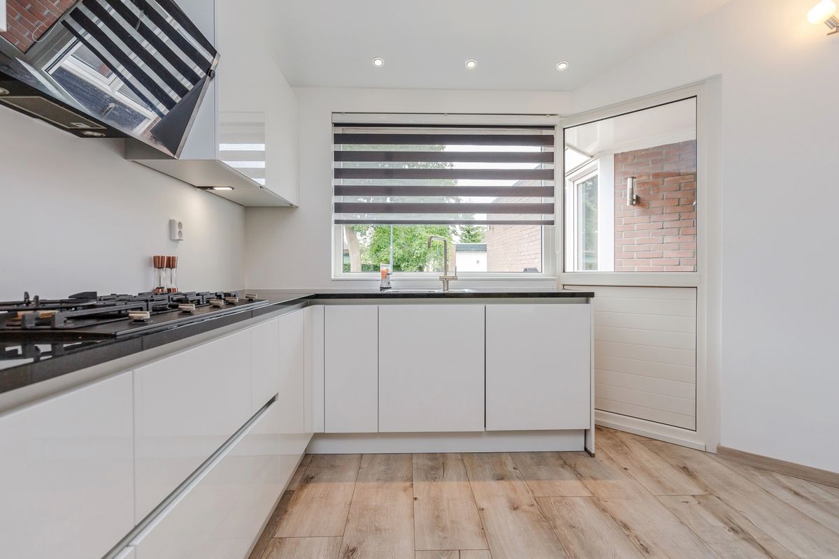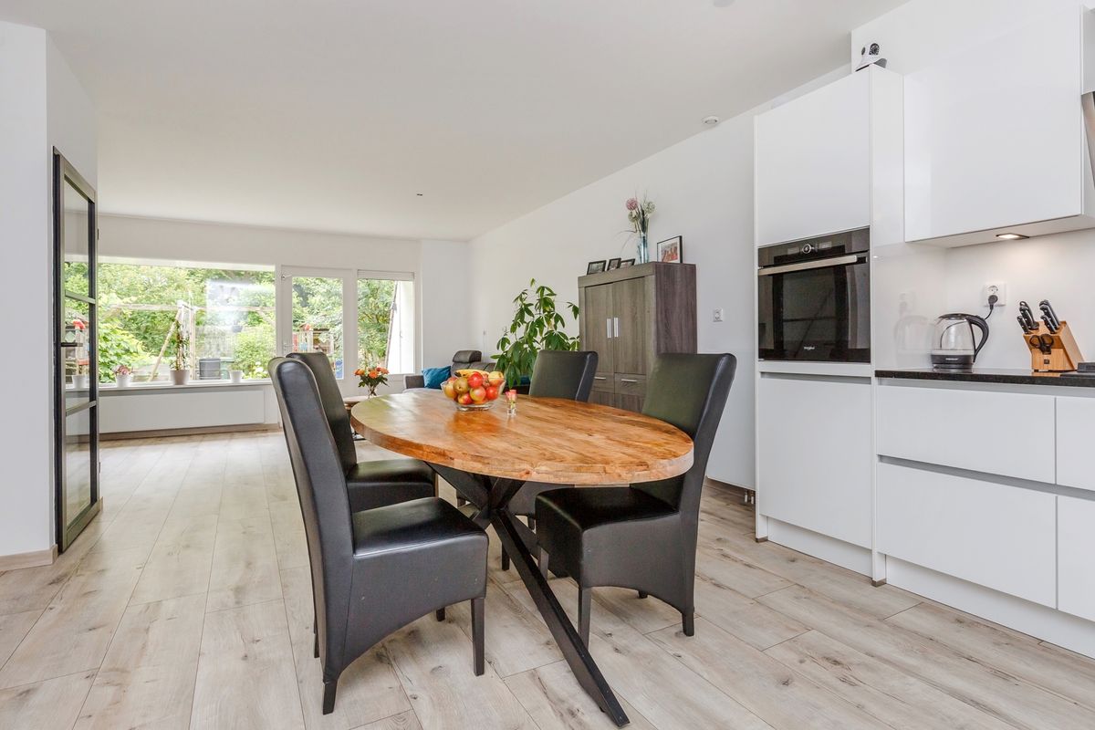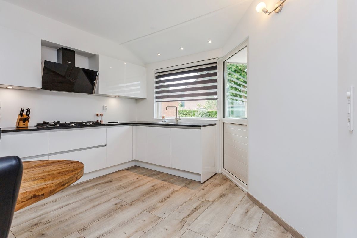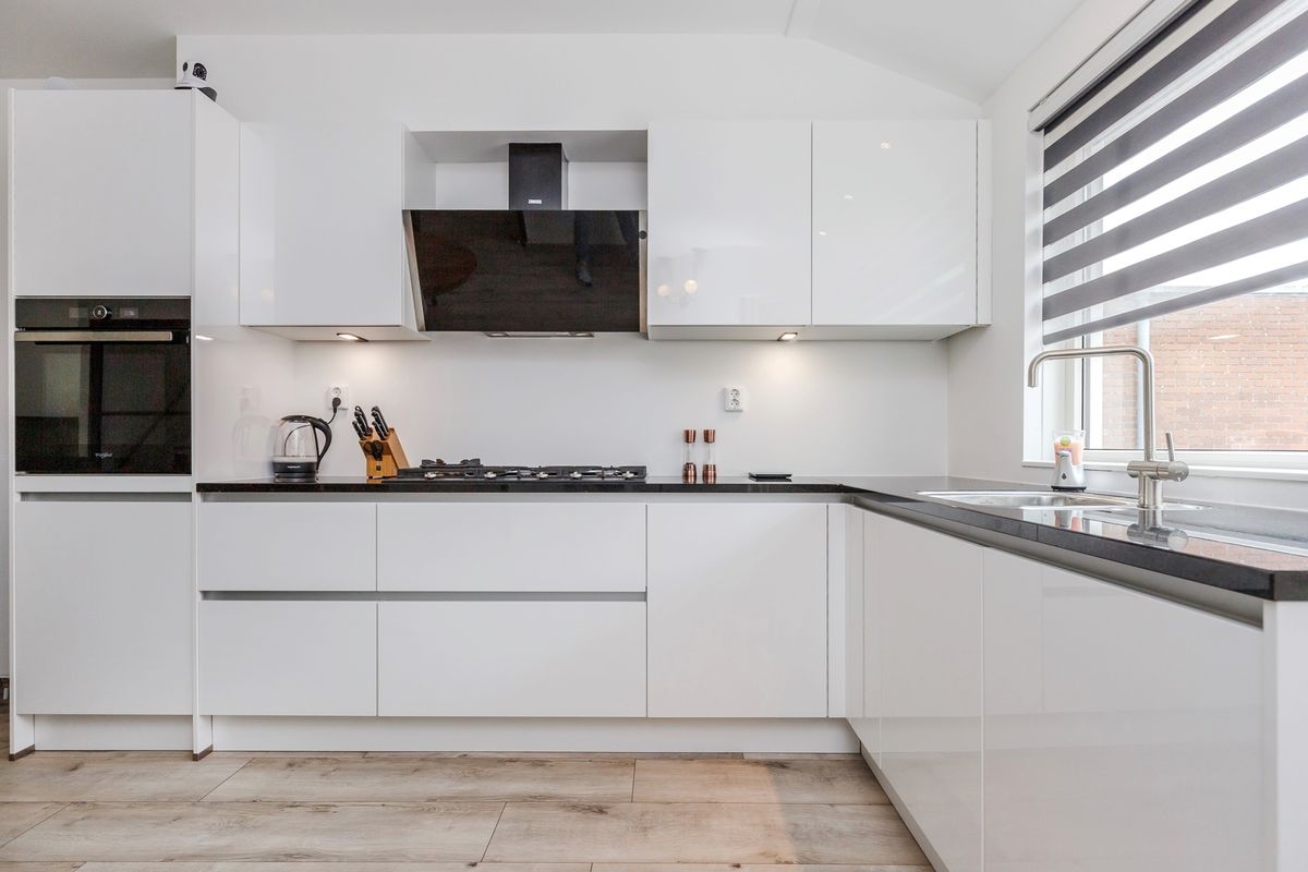De tuingerichte woonkamer heeft een loopdeur naar de achtertuin, is voorzien van een fraaie laminaatvloer en beschikt over een royale trapkast. Aan de voorzijde ligt de lichte keuken in rechte opstelling, uitgerust met alle wenselijke inbouwapparatuur en een royaal werkblad.