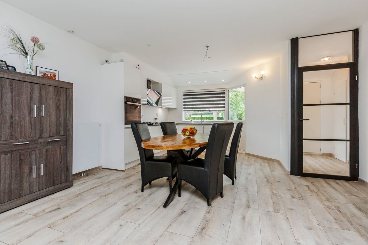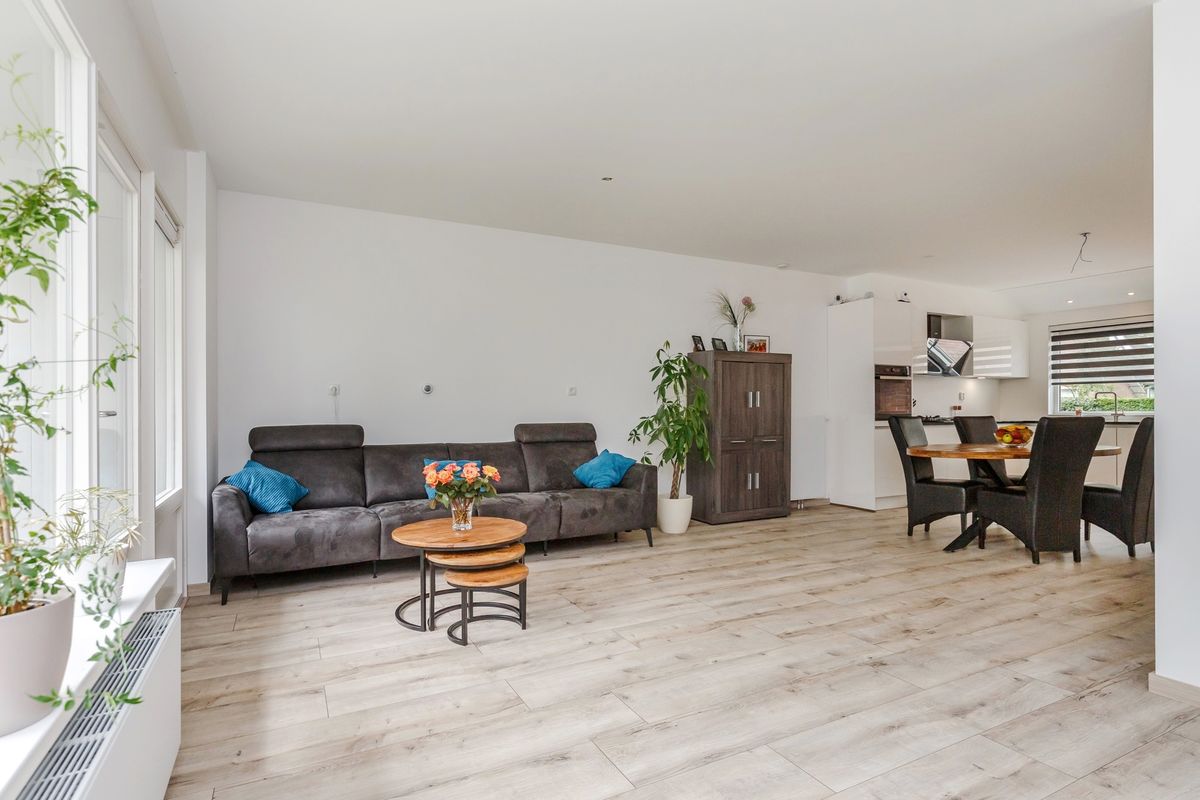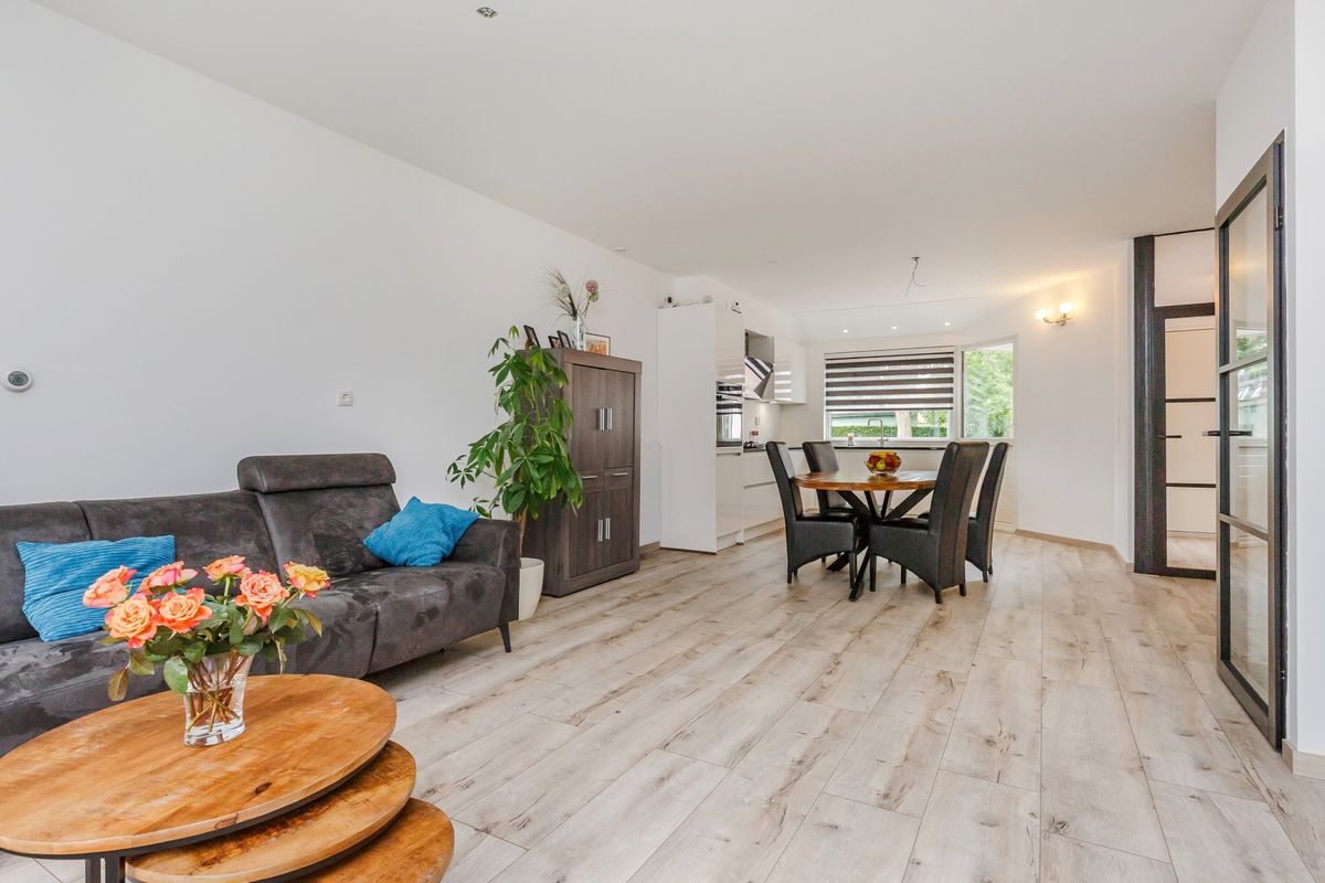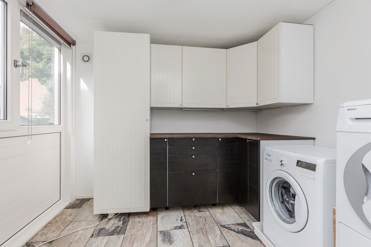 De tuingerichte woonkamer heeft een loopdeur naar de achtertuin, is voorzien van een fraaie laminaatvloer en beschikt over een royale trapkast. Aan de voorzijde ligt de lichte keuken in rechte opstelling, uitgerust met alle wenselijke inbouwapparatuur en een royaal werkblad.
