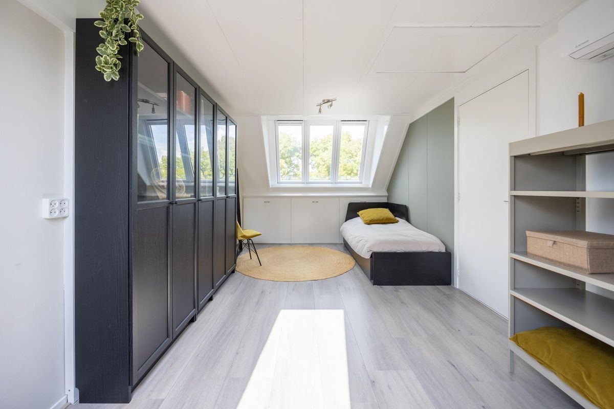 Het raam in de voorgevel zorgt voor lichtinval, bij de trap en op de overloop. Vanaf hier heb je toegang tot drie slaapkamers, waarvan twee aan de achterzijde. Een van deze kamers is de master bedroom, met een dakkapel en airco. De twee overige slaapkamers zijn in gebruik als ruime kinderkamer, met een mooie afwerking en veel lichtinval.