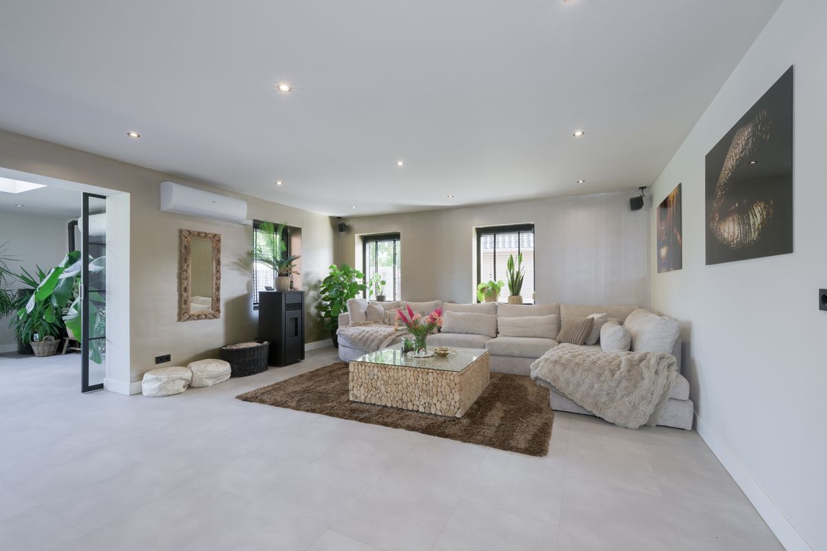 Daarnaast beschikt het perceel over een grote garage/ werkplaats ( ca. 75 m2 begane grond) met verdieping (ca. 70 m2), bedrijfshal (ca. 275 m2, bouwjaar 2023) met luxe kantoor/mancave (ca. 75 m2) en separate inrit. Een ruim bestraat buitenterrein, een paardenweide met dierenverblijf en een wellnessruimte ( ca. 60 m2) met o.a. sauna, ontspanningsruimte en extra slaapkamer. De combinatie van wooncomfort, bedrijfsruimte en ontspanning maakt dit object werkelijk compleet.