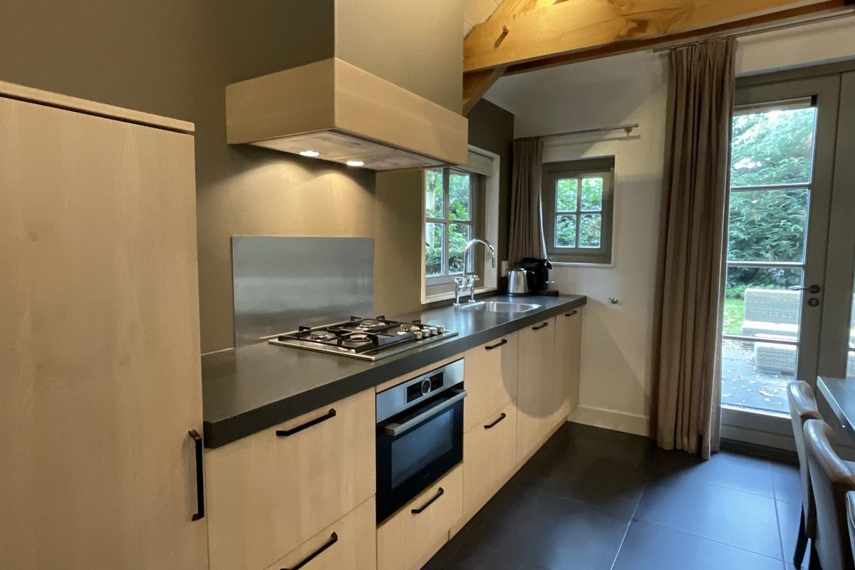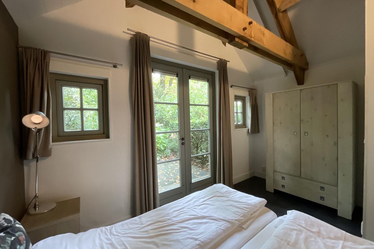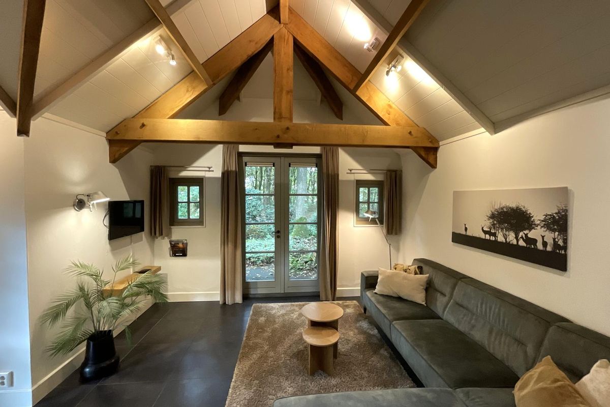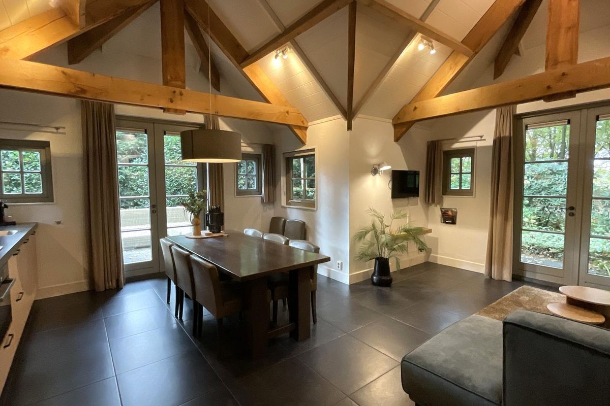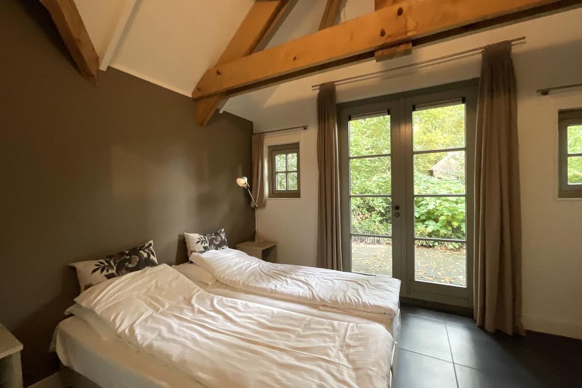 Indeling: Via de entree komt u in een royale hal die toegang biedt tot de verschillende vertrekken. De hoge plafonds en grote raampartijen geven direct een gevoel van licht en ruimte. Vanuit de hal bereikt u de sfeervolle woonkamer met karakteristieke balkenconstructie en openslaande deuren naar het terras. De combinatie van hoogte, daglicht en warme details creëert een bijzonder aangename leefruimte waar comfort en stijl samenkomen. De open keuken vormt het hart van de woning en is voorzien van een royaal werkblad en diverse inbouwapparatuur, ideaal voor wie graag kookt en dineert in een sfeervolle omgeving. Aangrenzend is voldoende ruimte voor een grote eettafel, vanwaar u eveneens toegang heeft tot de tuin via openslaande deuren. De masterbedroom op de begane grond beschikt over dubbele openslaande deuren naar een beschut terras, waardoor u vanuit uw slaapkamer direct van de rust en natuur kunt genieten. Verder is er een charmante bedstede die bijdraagt aan het authentieke Veluwse karakter van de woning. De badkamer is elegant uitgevoerd en beschikt over een ligbad, inloopdouche, wastafelmeubel en designradiator. Het toilet is separaat en vanuit de hal bereikbaar. De gehele begane grond is voorzien van vloerverwarming, wat zorgt voor aangenaam wooncomfort.