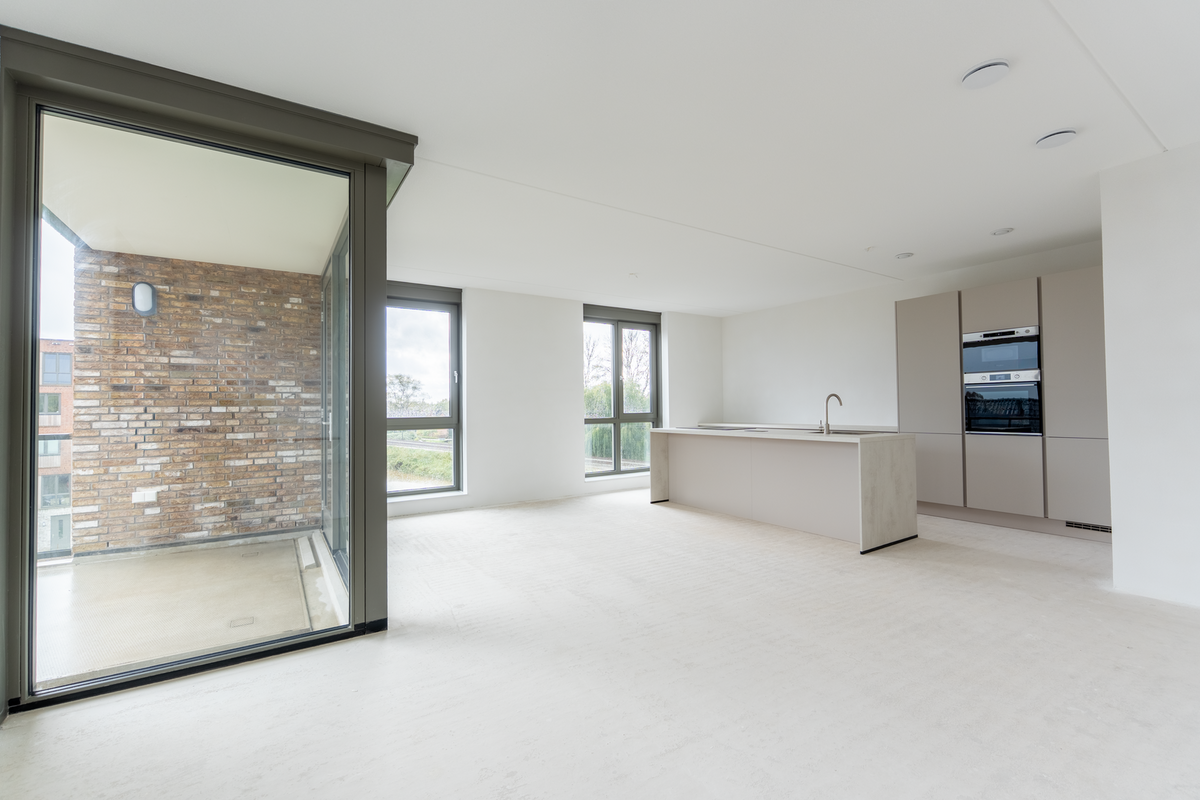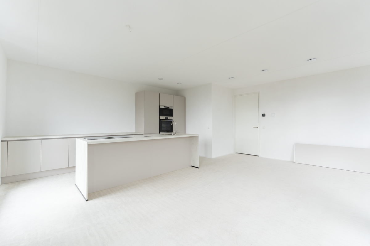 De ruime woonkamer is licht en open, met grote raampartijen die zorgen voor een overvloed aan natuurlijk licht. Vanuit de woonkamer bereikt u direct het balkon, waar u kunt genieten van een vrij uitzicht op de omgeving.