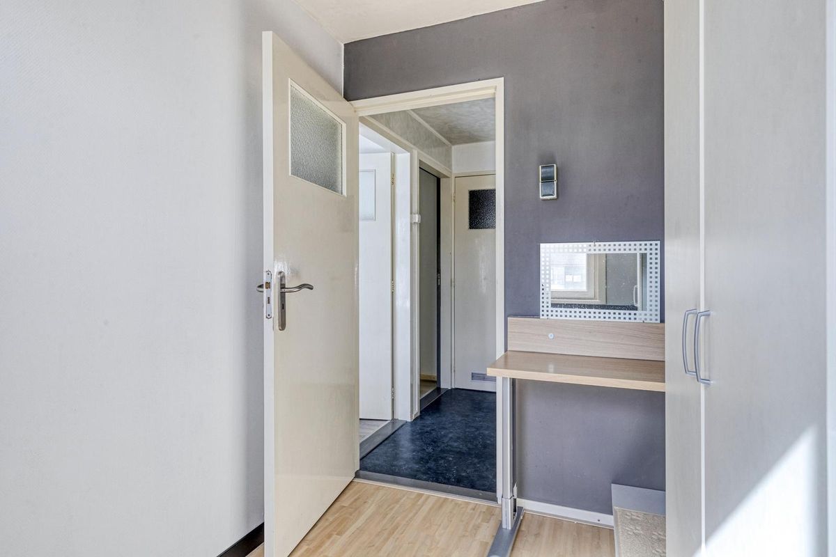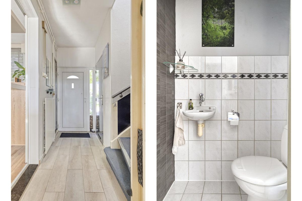 Via de verzorgde voortuin loop je naar de nette entree van de woning. Binnenkomend in de hal word je verwelkomd door een frisse, verzorgde afwerking. Hier vind je het toilet, de trap naar boven en toegang tot de woonkamer.