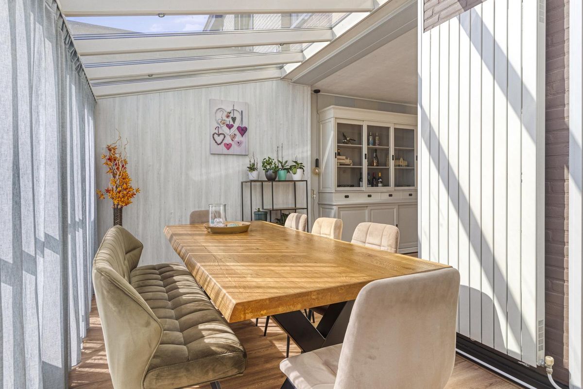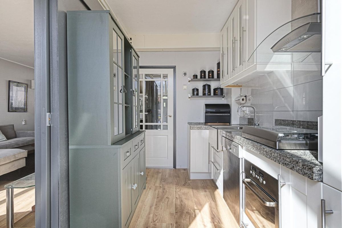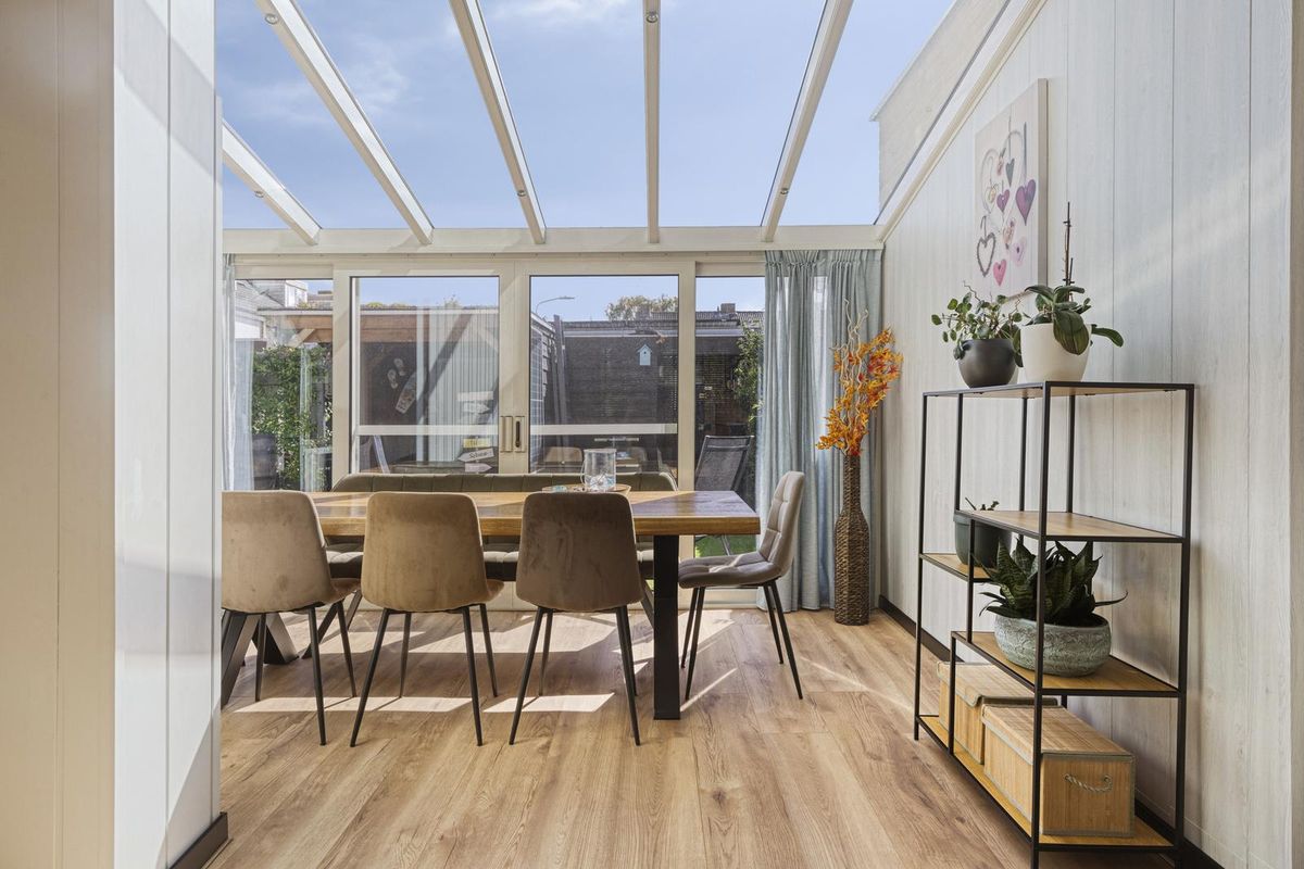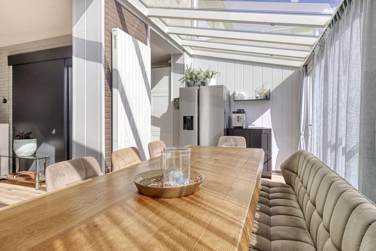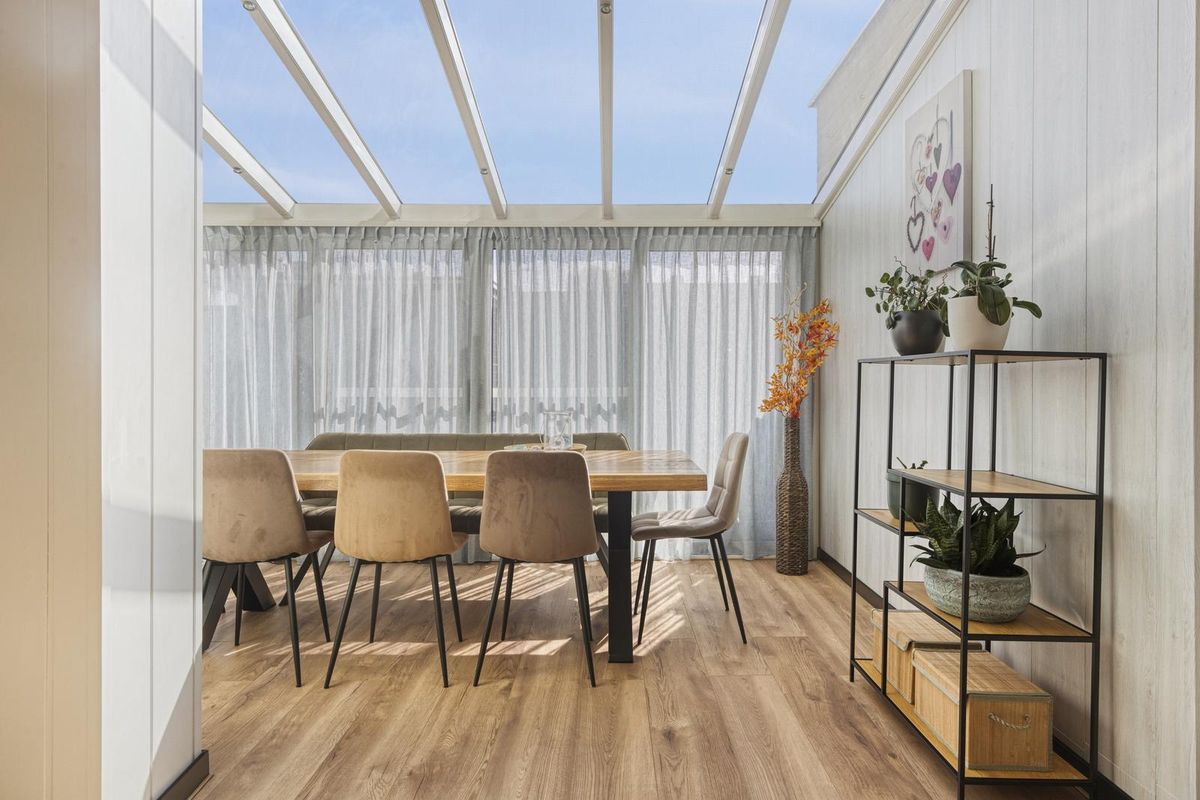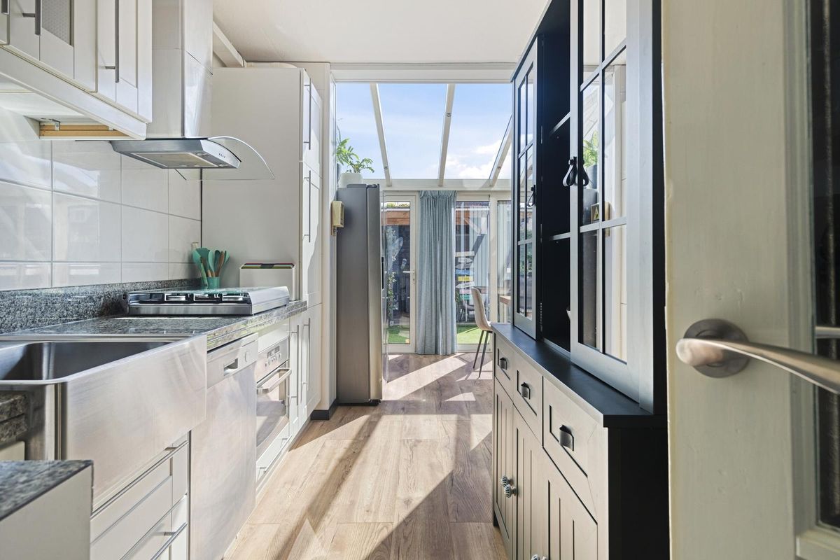 De woonkamer is een heerlijke, royale ruimte met een strakke afwerking en volop mogelijkheden om je interieur helemaal naar wens in te richten. Er is meer dan genoeg ruimte voor een grote zithoek en kasten voor al je spullen. Maar het echte wow-effect? De prachtige serre aan de achterzijde waar nu de eettafel staat. Het licht dat hier binnenvalt is werkelijk schitterend en maakt van deze ruimte een absolute eyecatcher. Extra pluspunt: in de zomer zorgt de aanwezige airco in de woonkamer voor de nodige verkoeling. De keuken grenst aan zowel de woonkamer als de serre, waardoor ook hier het daglicht rijkelijk binnenvalt. Deze nette keuken is uitgerust met diverse inbouwapparatuur en biedt voldoende werk- en opbergruimte. Een heerlijke plek om te koken, met uitzicht op je zonnige tuin.