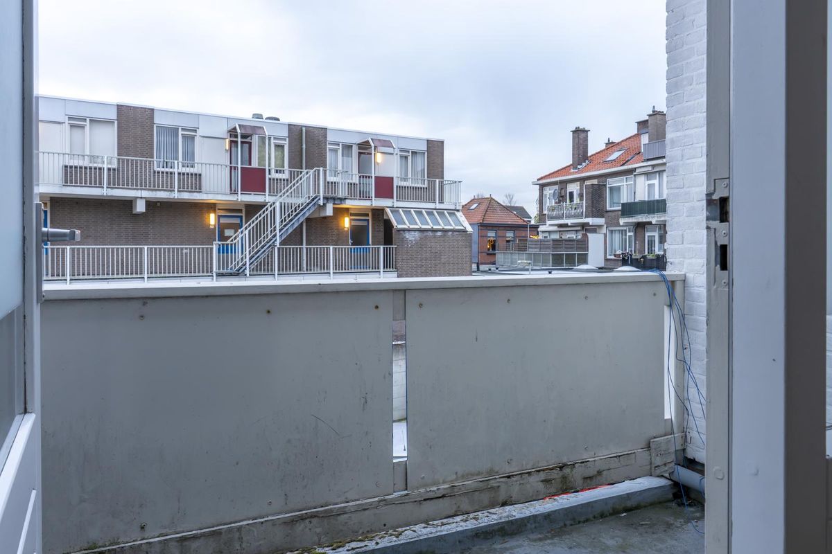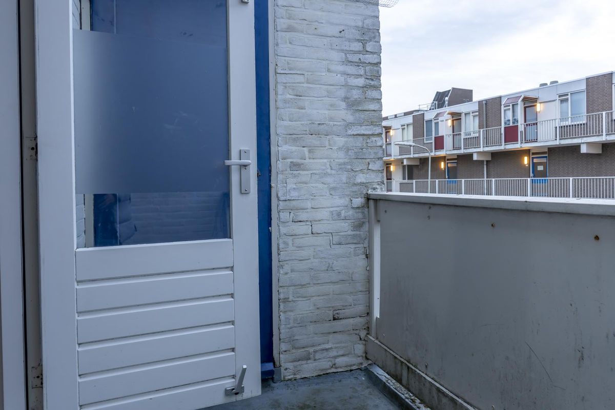 Het zonnige balkon (ca. 2.80 x 1.53) op het zuidwesten, met praktische balkonkast, biedt een fijne plek voor een middagmoment in de zon.
