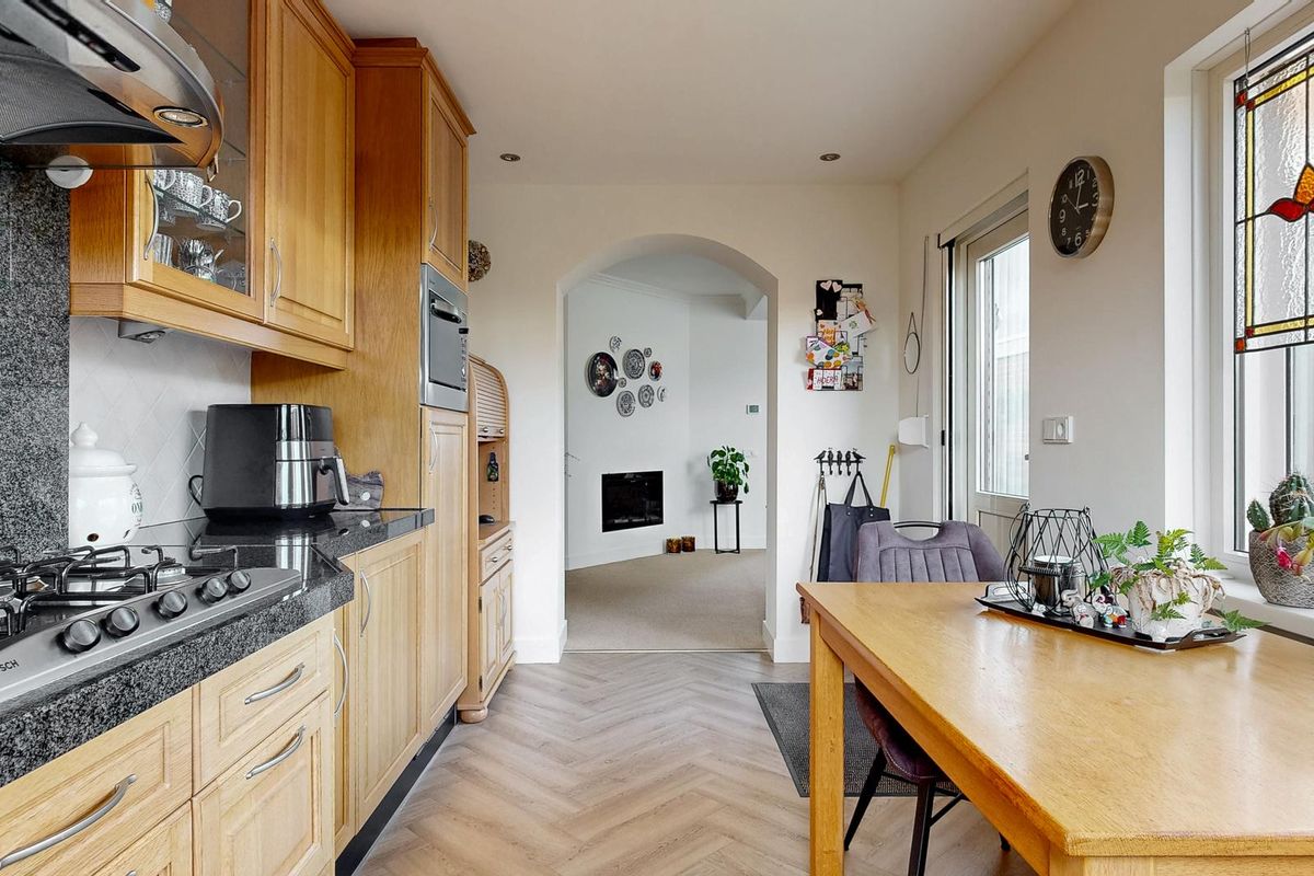 Wanneer je de woonkamer binnenstapt, valt de rust op. Het daglicht stroomt naar binnen en geeft de ruimte een zachte, open sfeer. Hier zie je jezelf al zitten: een kop koffie in de ochtendzon, een gezellig avondje met vrienden of simpelweg een rustige zondag met een goed boek. De keuken staat in verbinding met de woonkamer en biedt precies die huiselijkheid waar een gezin of stel zich helemaal kan vinden.