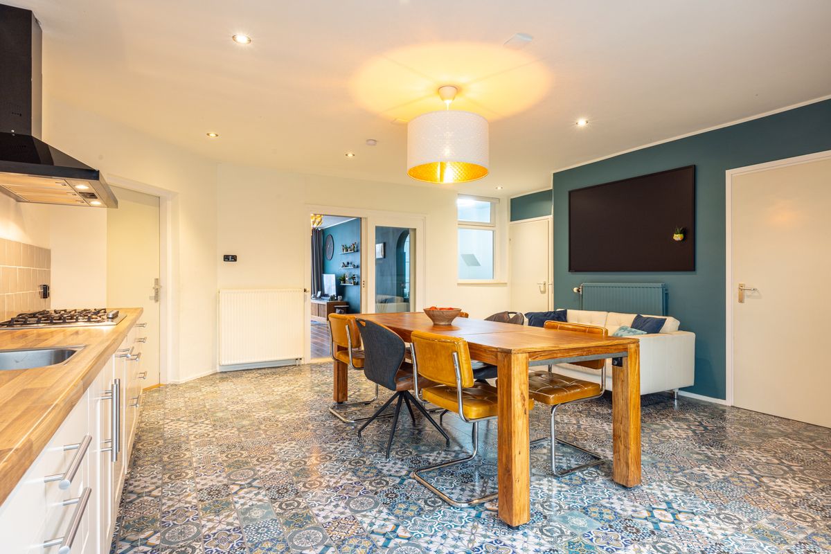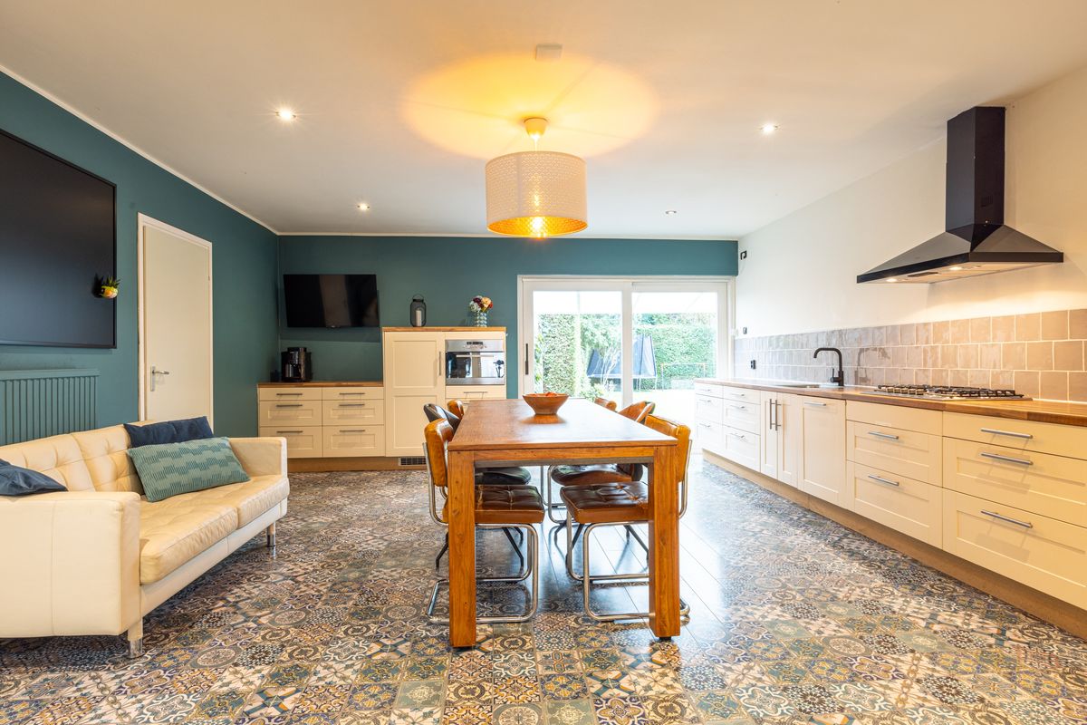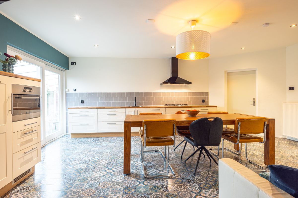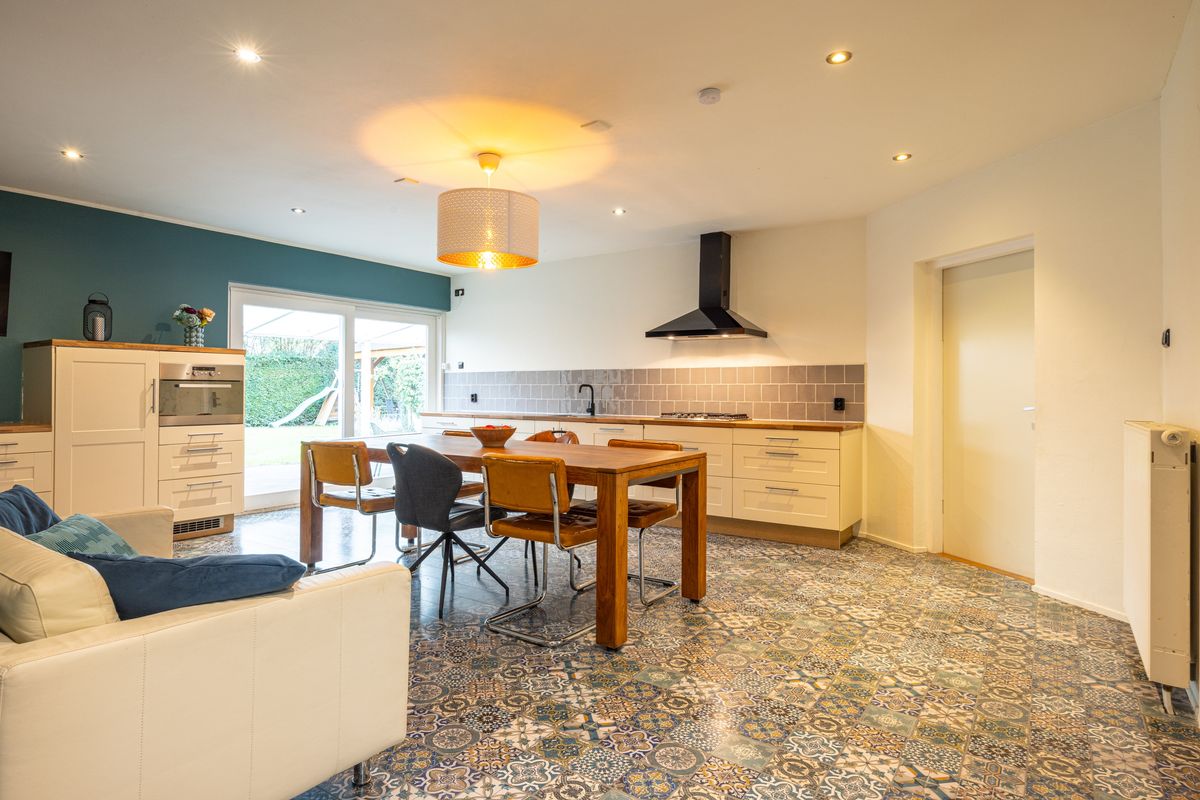 Via de schuifpui stap je zo de tuin in en valt het daglicht prettig naar binnen.