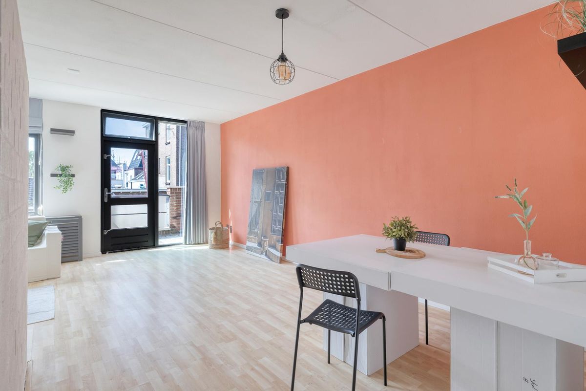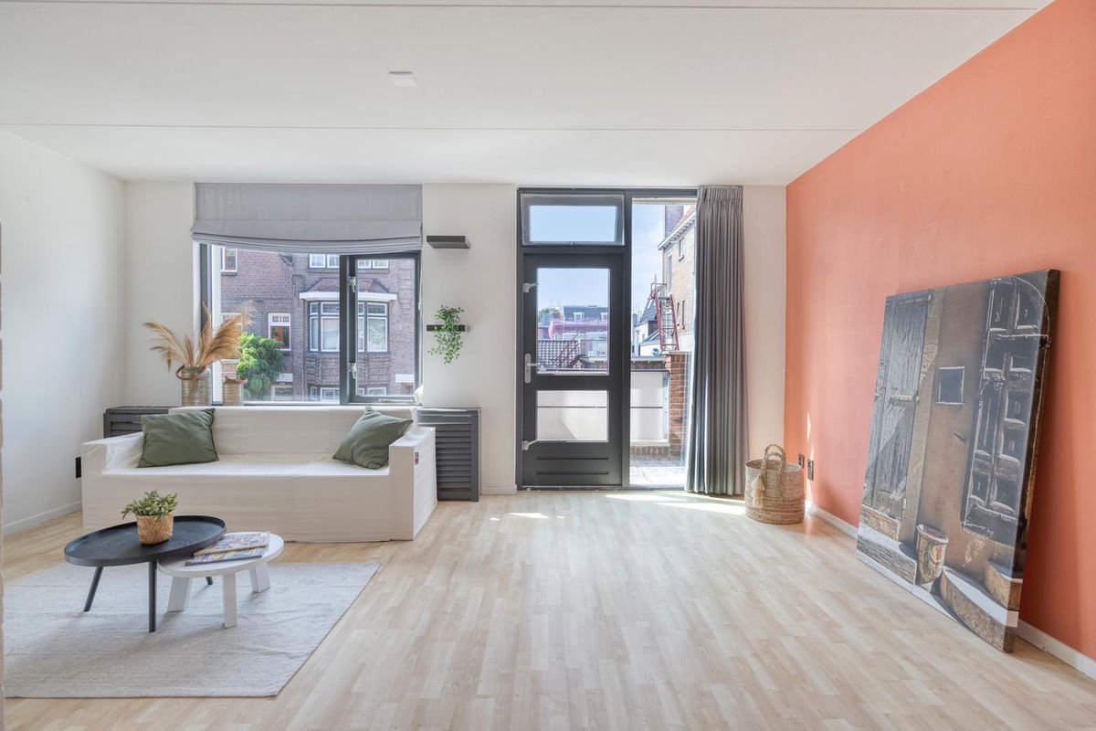 De woonkamer heeft grote ramen waardoor het daglicht rijkelijk binnenstroomt, en via de openslaande deur bereik je het balkon op het zuidwesten. Hier kun je na een drukke dag heerlijk neerploffen en genieten van de middag- en avondzon met een goed glas wijn of een kop koffie.