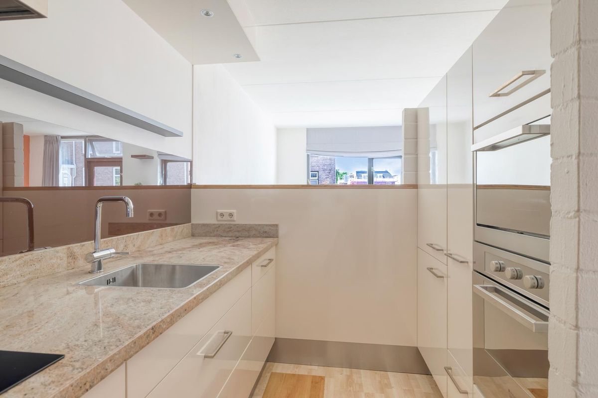 De keuken is modern en volledig uitgerust, zodat koken altijd een plezier is – of je nu uitgebreid kookt voor vrienden of snel iets kleins bereidt na een avond in de stad. Je treft er een 4-pits keramische kookplaat, afzuigkap, oven, combi-magnetron, vaatwasser, spoelbak, koelkast, diepvries, inbouwkast en diverse boven- en onderkasten.