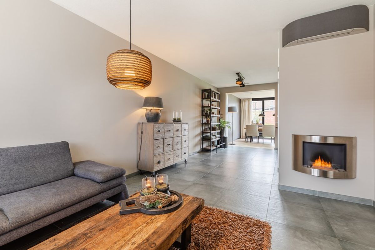 De begane grond is afgewerkt met moderne vloeren en voorzien van vloerverwarming en beschikt o.a. over een hal en een zwevend toilet met fonteintje. Daarnaast is er een riante living (57 m²), bestaande uit de sfeervolle woonkamer met moderne tegelvloer, airconditioning en erker.