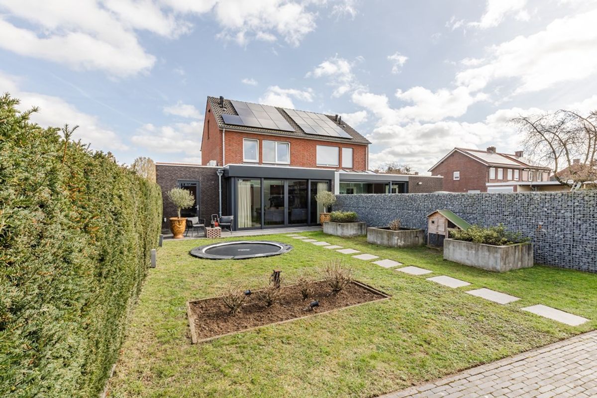 Uitstekend onderhouden, royaal ingedeelde en smaakvol afgewerkte twee onder één kapwoning met aanbouw, garage, berging en een grote tuin op een perceel van 376 m².
