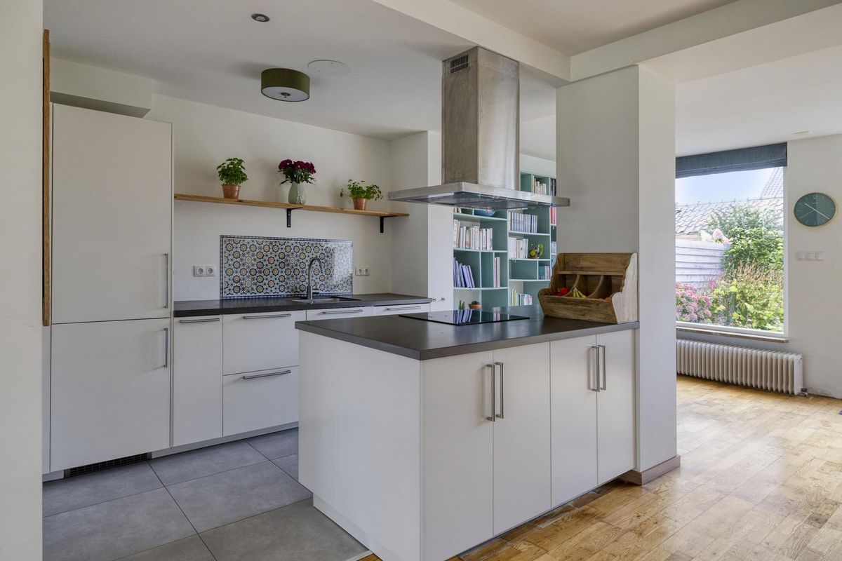 De moderne keuken heeft een keukenblok met een spoelbak, een koelkast en vriezer (met drie lades) en een vaatwasmachine. Het kookeiland heeft een inductiekookplaat, een afzuigkap, een oven en kastruimten.