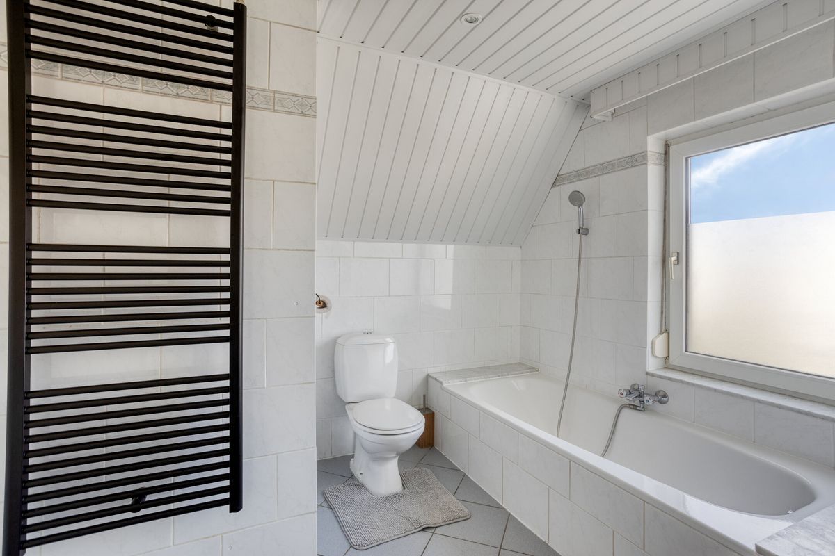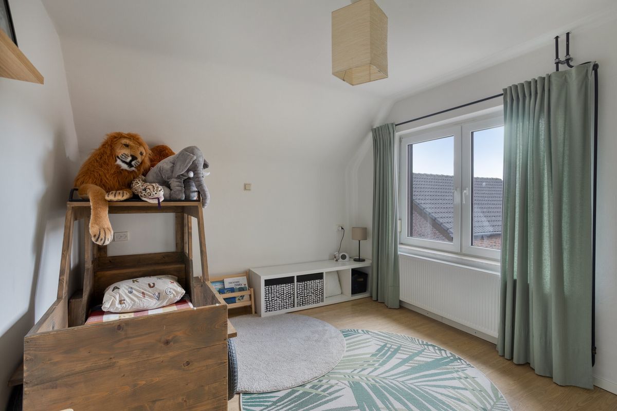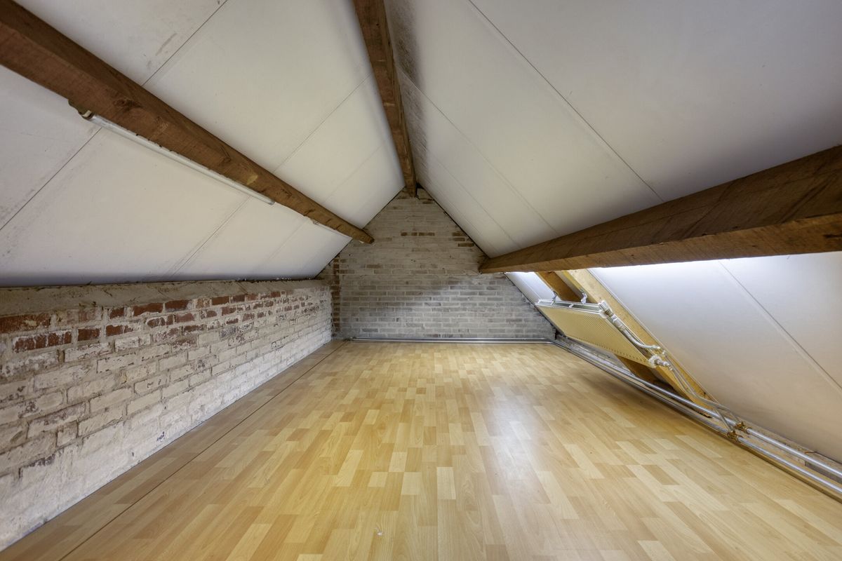 Zolder: via vlizotrap bereikbare geïsoleerde zolder. De garage beschikt over twee kantelpoorten en heeft een ruime berging op de vliering (15m2).