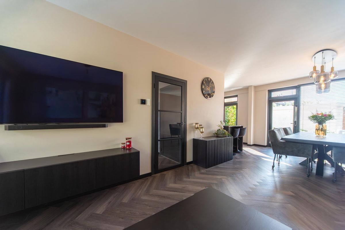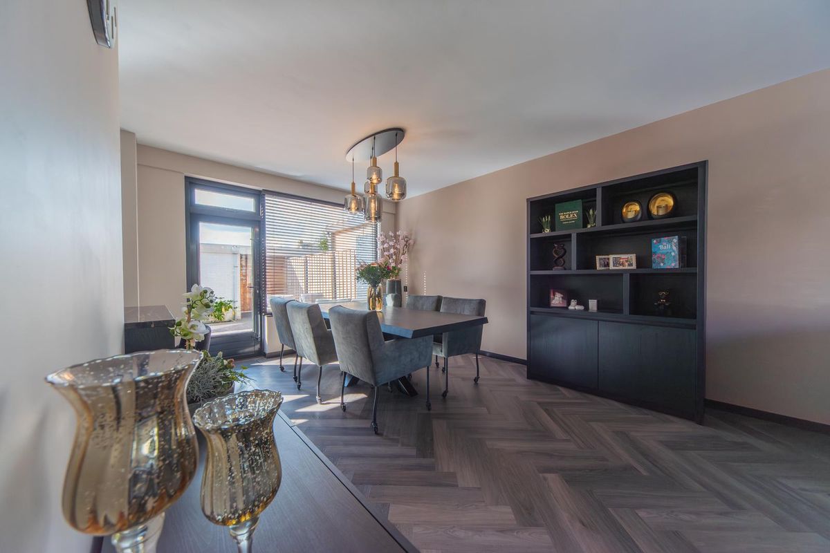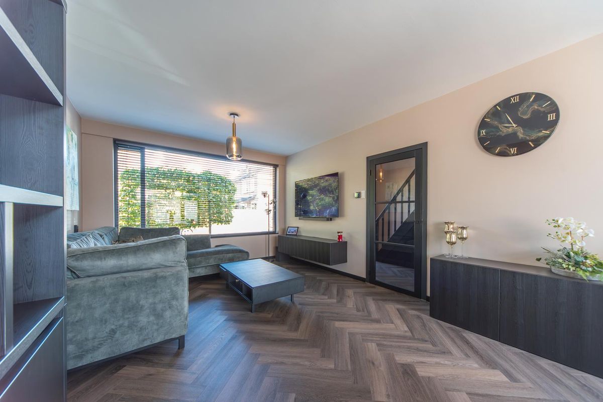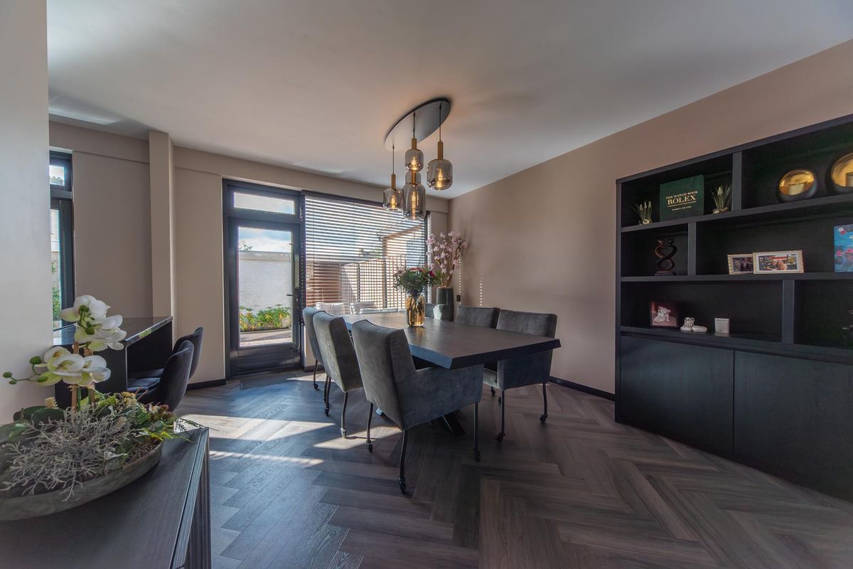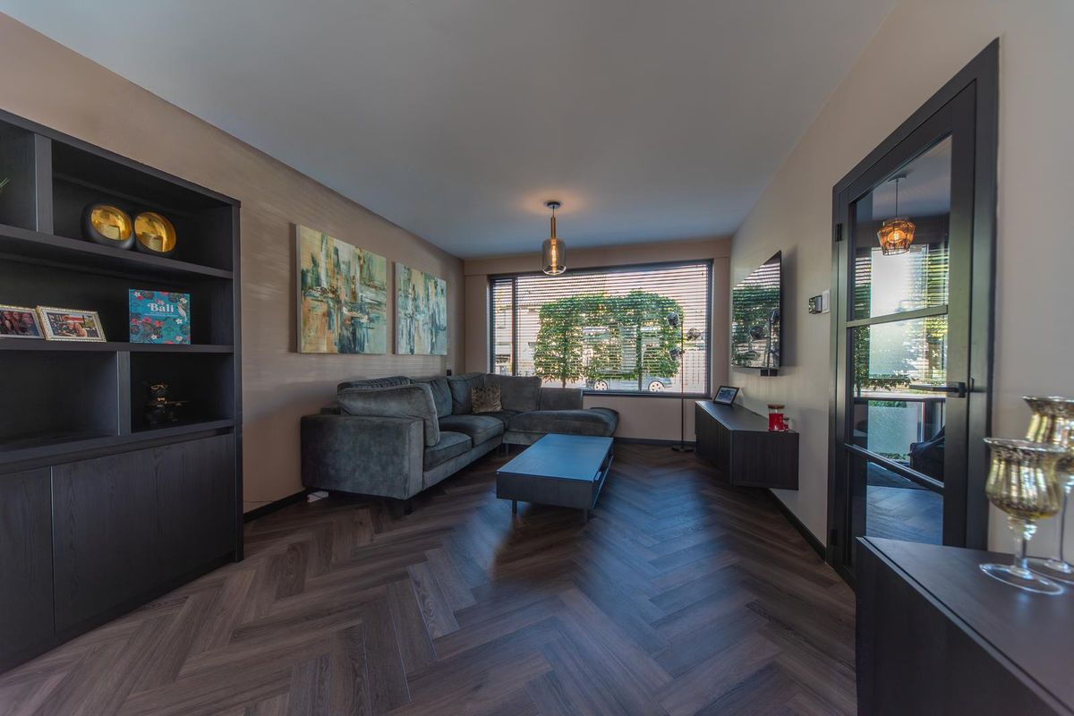 Als u de voortuin inloopt, valt al gelijk de strakke, moderne voortuin met sierbestrating, plantenbakken en leibomen op. U weet het gelijk: "Dit is een woning met een hoog afwerkingsniveau en een stijl die u vaak alleen in woningmagazines tegenkomt".