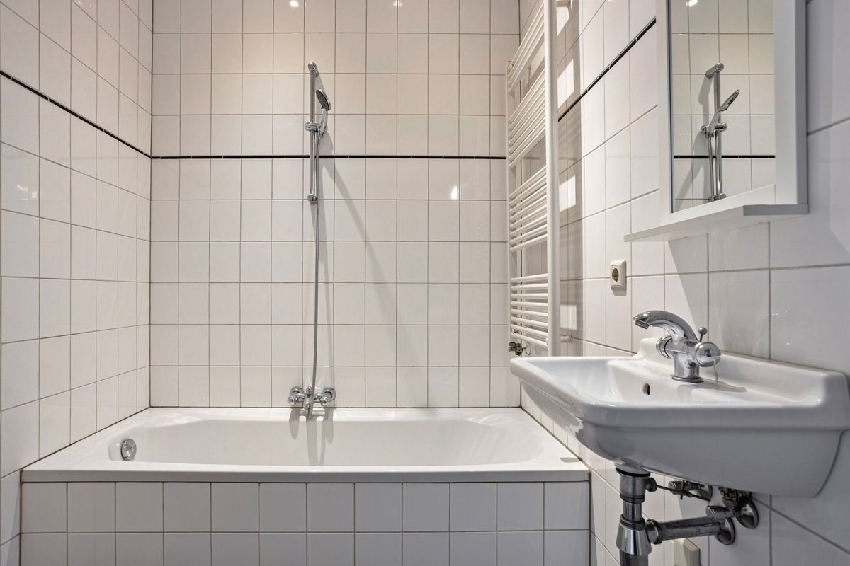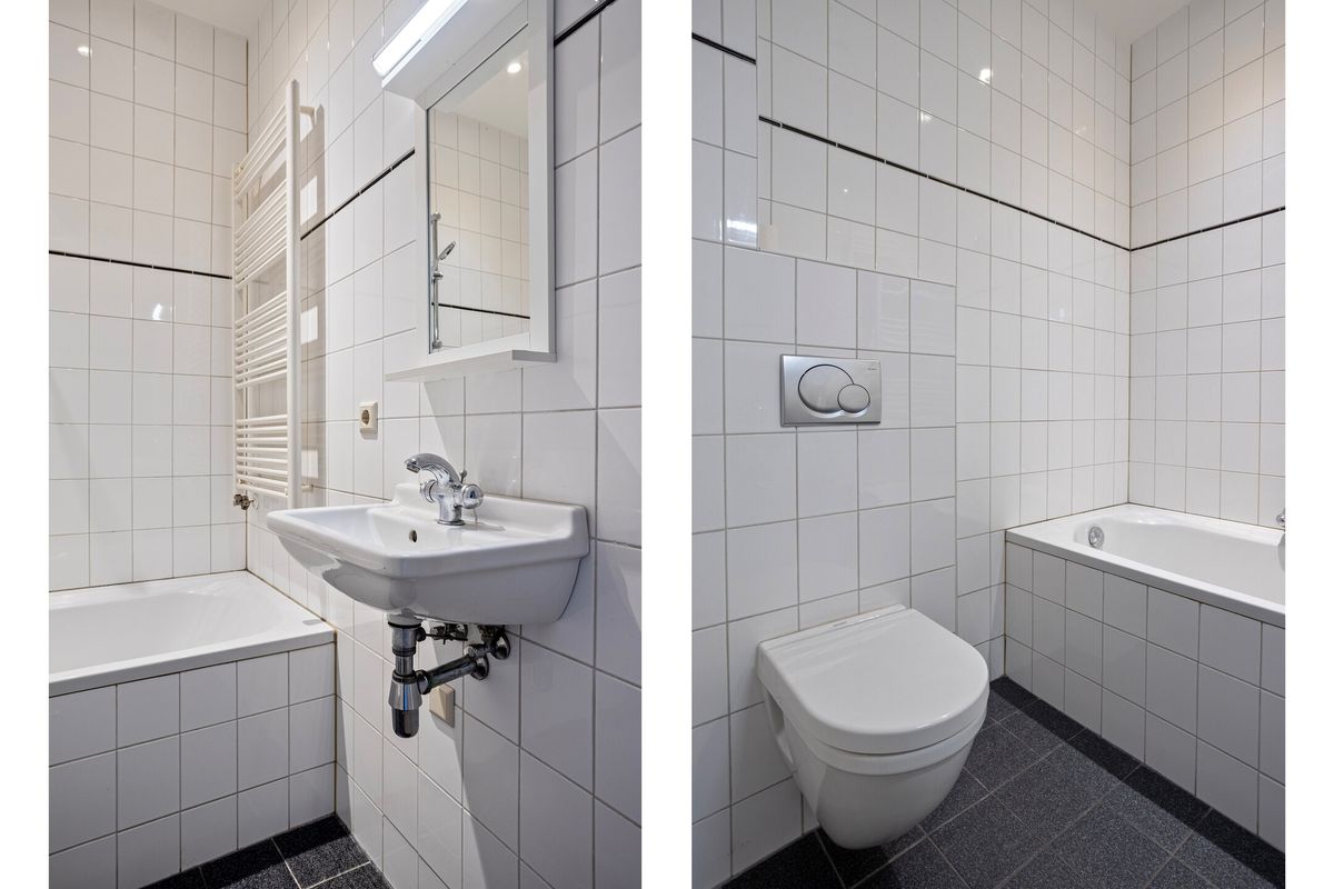 De slaapkamer is rustig gelegen en beschikt eveneens over een groot raamkozijn dat zorgt voor veel natuurlijk licht. De badkamer is ruim opgezet en uitgerust met een ligbad, toilet, wastafel en designradiator.