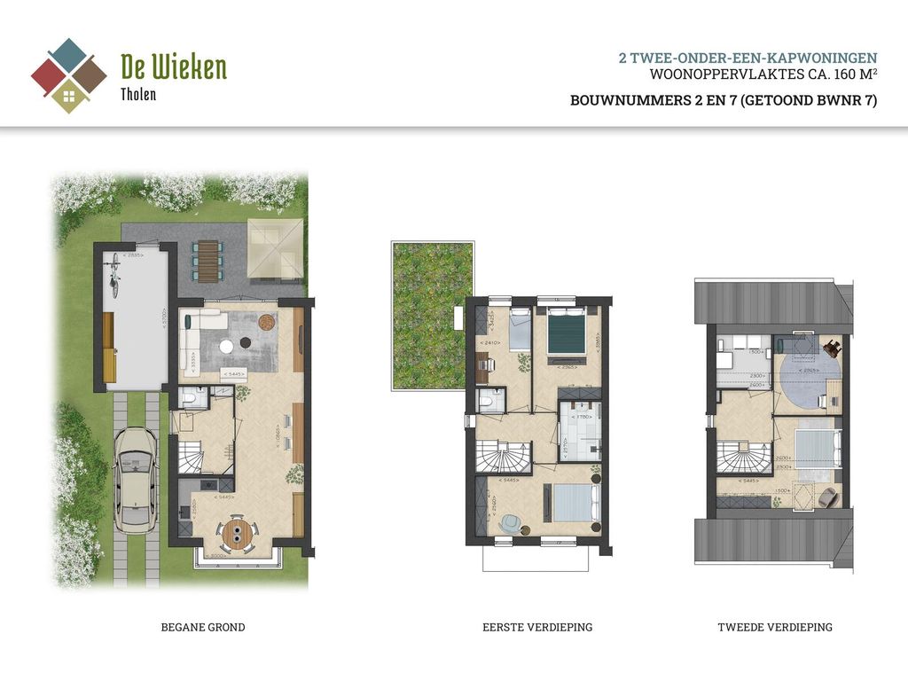 Bouwnummer 7 heeft een asymmetrisch ontwerp met langskapdak, waardoor de gevels een speelse en eigentijdse uitstraling krijgen. Deze woning beschikt over drie volwaardige woonlagen en een tuin die aan drie zijden is georiënteerd. Uw auto(’s) parkeert u eenvoudig op eigen terrein, direct naast de woning.