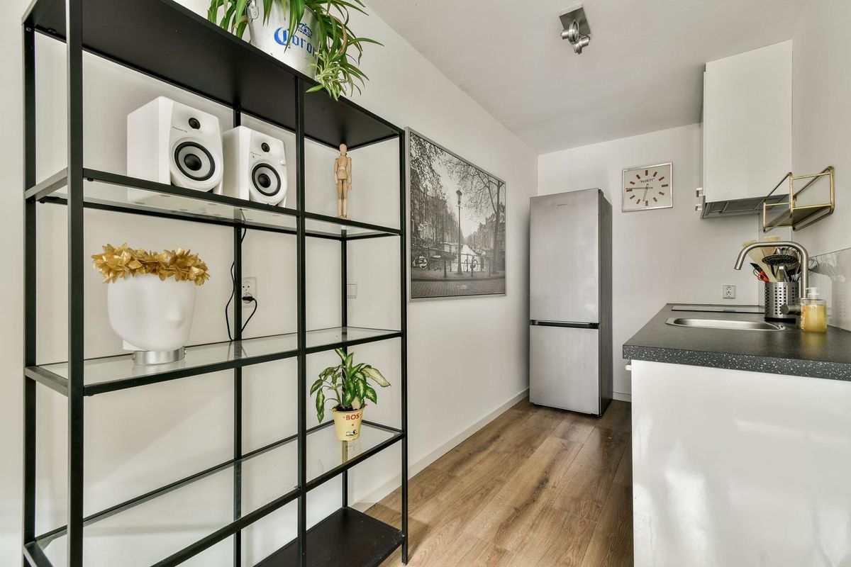 De keuken is uitgevoerd in wit met een donker werkblad en beschikt over diverse moderne inbouwapparatuur, waaronder een vaatwasser (Bosch, 2024), een oven (Bosch, 2022) en een losse koel-vriescombinatie (Samsung, circa 2023). Er wordt elektrisch gekookt op een 4-pits inductiekookplaat die enkele jaren geleden ook is vernieuwd. Boven de keuken bevindt zich extra opbergruimte. Doordat de keuken in open verbinding staat met de woonkamer, kun je gezellig koken terwijl je gasten plaatsnemen aan de eettafel. De niet-dragende wand tussen de keuken en de slaapkamer aan de linker achterzijde (door de huidige eigenaar geplaatst) kan eenvoudig worden verwijderd, waardoor een royale doorzonwoonkamer met nóg meer licht ontstaat.
