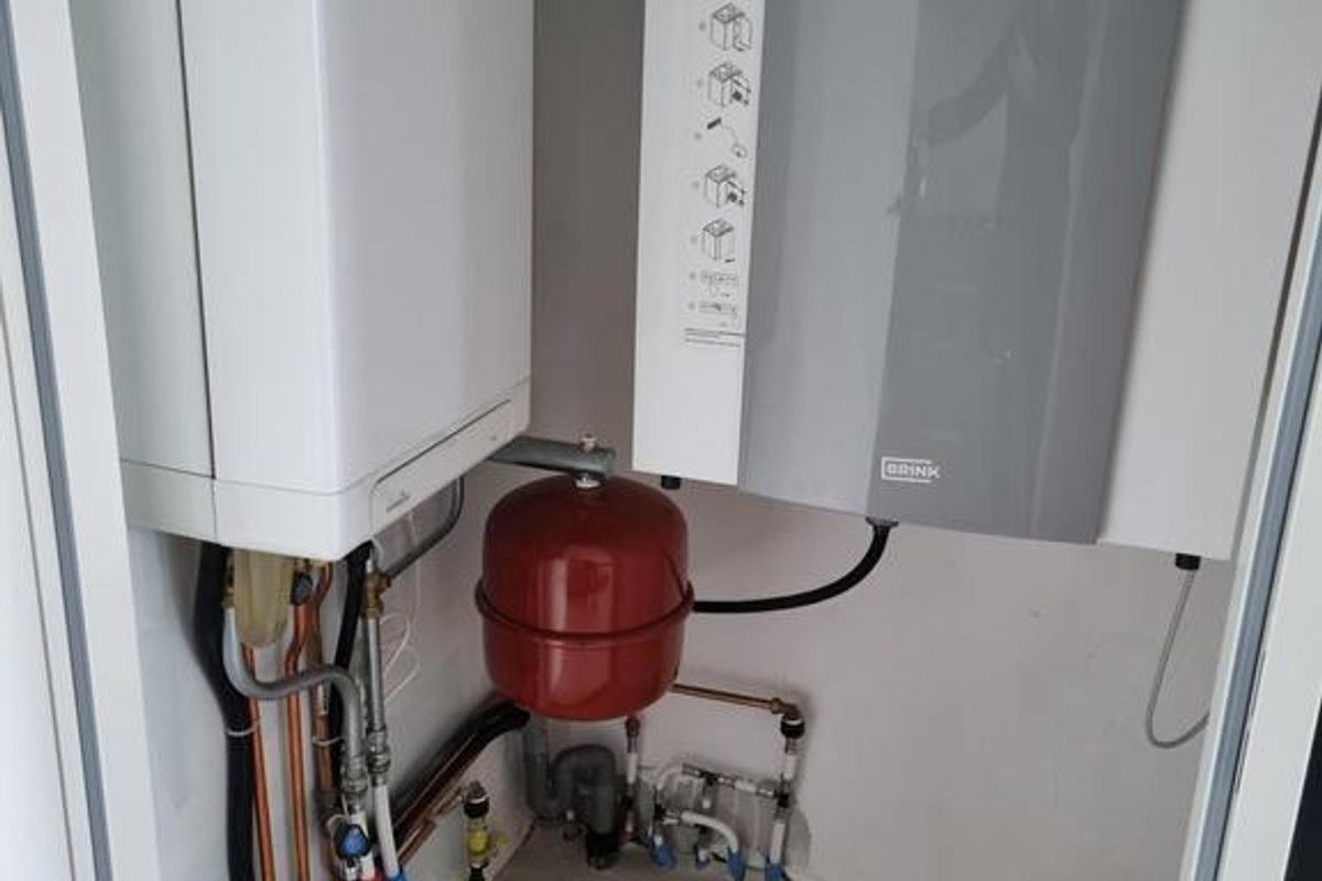 Layout: Entrance/hall, meter cupboard, hanging toilet with sink, bright living room with two large turn/tilt windows, patio doors to the balcony on the southwest, semi-open kitchen with a 4-burner gas stove, combi-microwave, extractor hood, dishwasher and refrigerator with freezer compartment. From the kitchen there is access to a closet with storage space. The central heating boiler and heat recovery system are also located here. At the front of the apartment is the bedroom with direct access to the bathroom with walk-in shower, sink and connections for washing machine and dryer.
