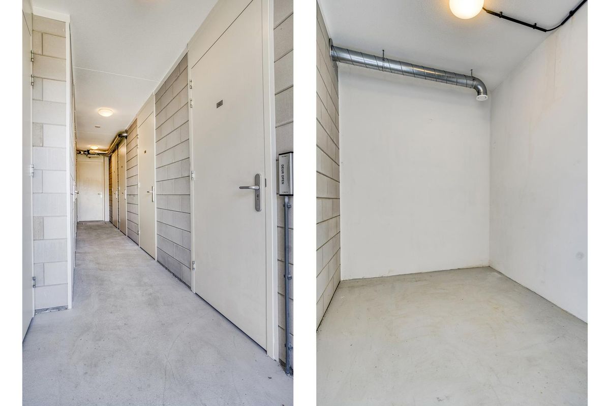Grote raampartijen zorgen voor veel lichtinval. Vanuit de woonkamer heeft u via een deur toegang tot het terras met uitzicht op de Sionkerk. De badkamer is bereikbaar vanuit zowel de hal als de slaapkamer en is volledig betegeld met een zwevend toilet, douche, wastafel en spiegel. In de berging is een aansluiting aanwezig voor wasmachine en droger.