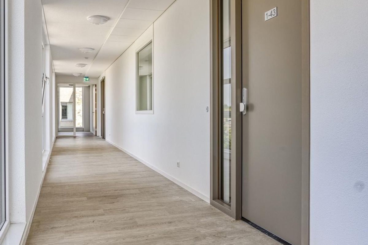Grote raampartijen zorgen voor aangename lichtinval. Vanuit de woonkamer is via een deur toegang tot het terras. De badkamer is bereikbaar vanuit zowel de hal als de slaapkamer en is volledig betegeld, voorzien van een zwevend toilet, douche, wastafel en spiegel. In de berging is een aansluiting aanwezig voor wasmachine en droger.