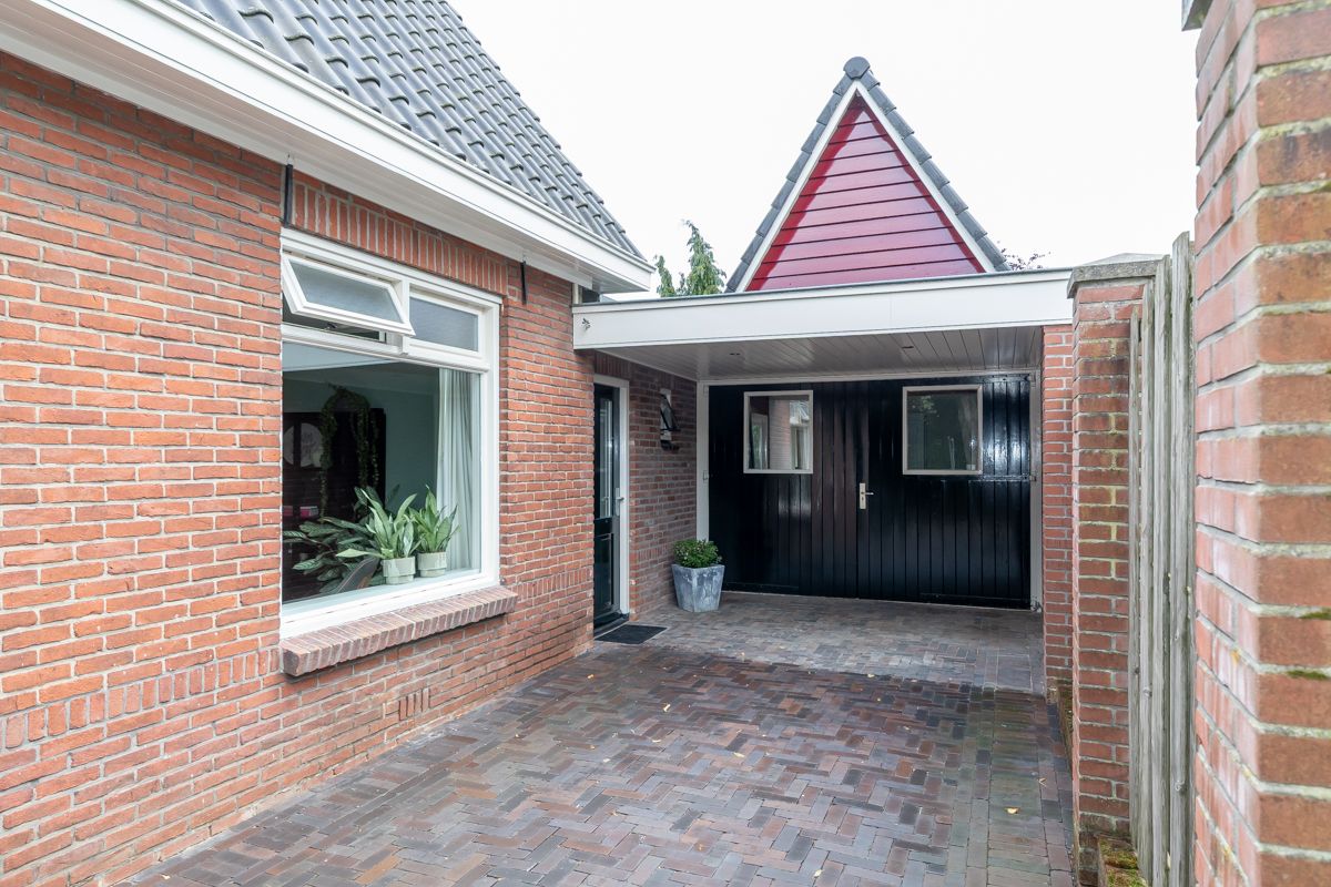 Via de carport of de tuin bereikt u de aangebouwde garage met kantoor en berging. Prettig om rustig thuis te kunnen werken.