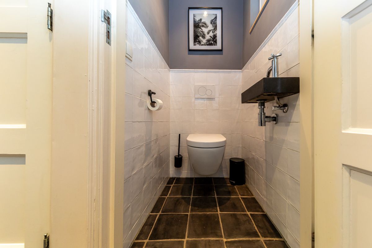 Bij binnenkomst via de entree vind je de toiletruimte en toegang tot de praktische bijkeuken, voorzien van witgoedaansluitingen. Allen voorzien van vloerverwarming.