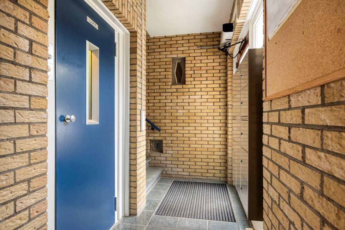 De gezamenlijke entree is verzorgd en overzichtelijk ingericht, met brievenbussen, bellentableau en toegang tot het trappenhuis met liftinstallatie. Vanuit hier bereikt u ook de bergingen in de onderbouw, waar het appartement beschikt over een eigen, praktische berging. Rondom het gebouw is parkeergelegenheid aanwezig voor bewoners en bezoekers.
