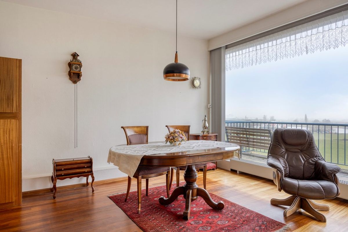 Het balkon is een fijne verlenging van de woonkamer; er is genoeg ruimte voor een gezellige zit. Hier geniet u van het vrije uitzicht en de zon, een plek waar u op elk moment van de dag even kunt ontspannen.