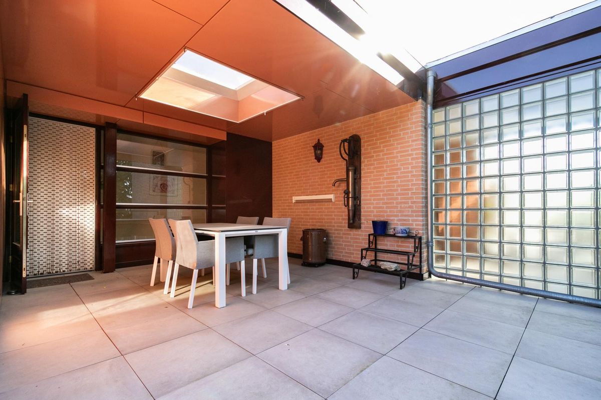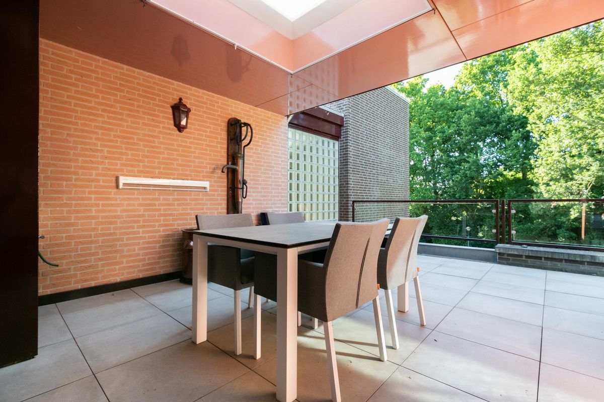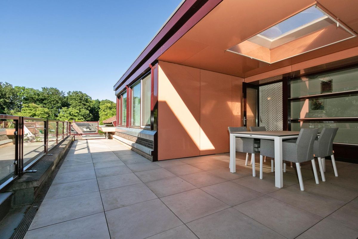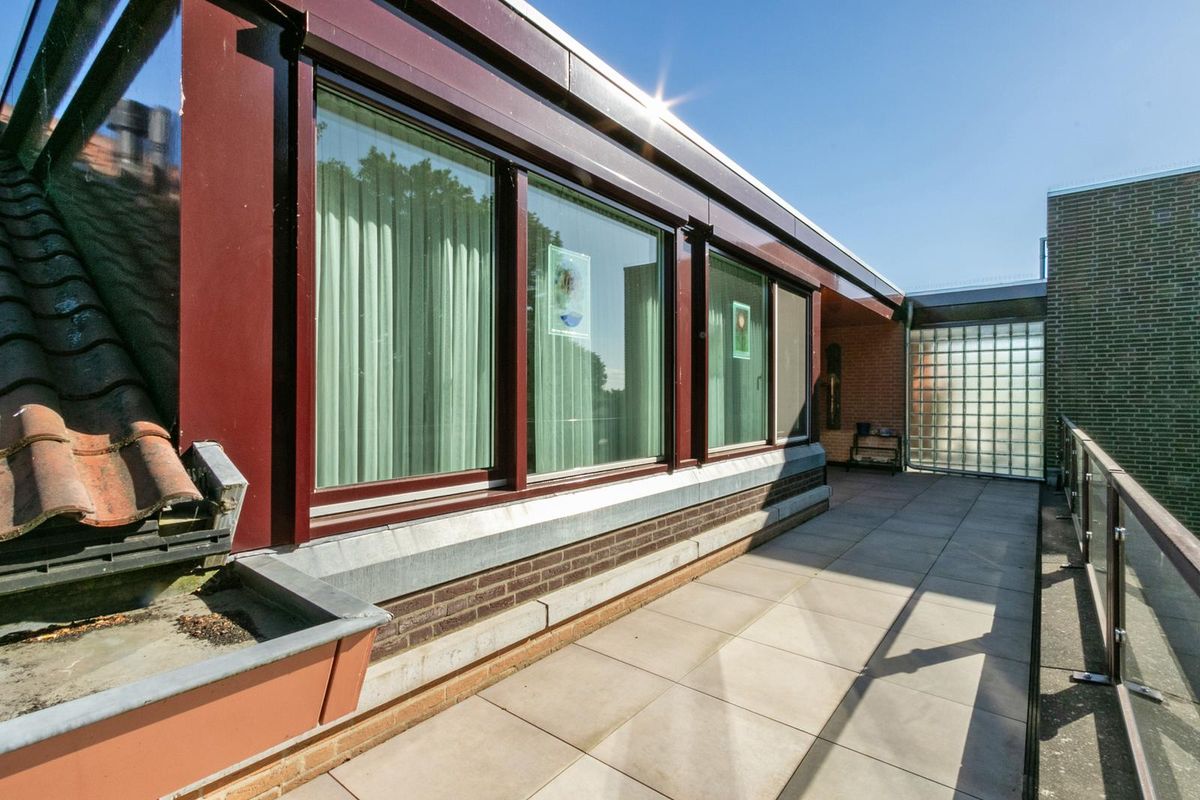 Het grote dakterras aan de achterzijde is uniek te noemen. Een deel is overdekt en hier kun je heerlijk droog en uit de wind vertoeven. Vanuit het terras kijk je op de binnenplaats van het complex. Het dakterras loopt door langs de lengte van het appartement.