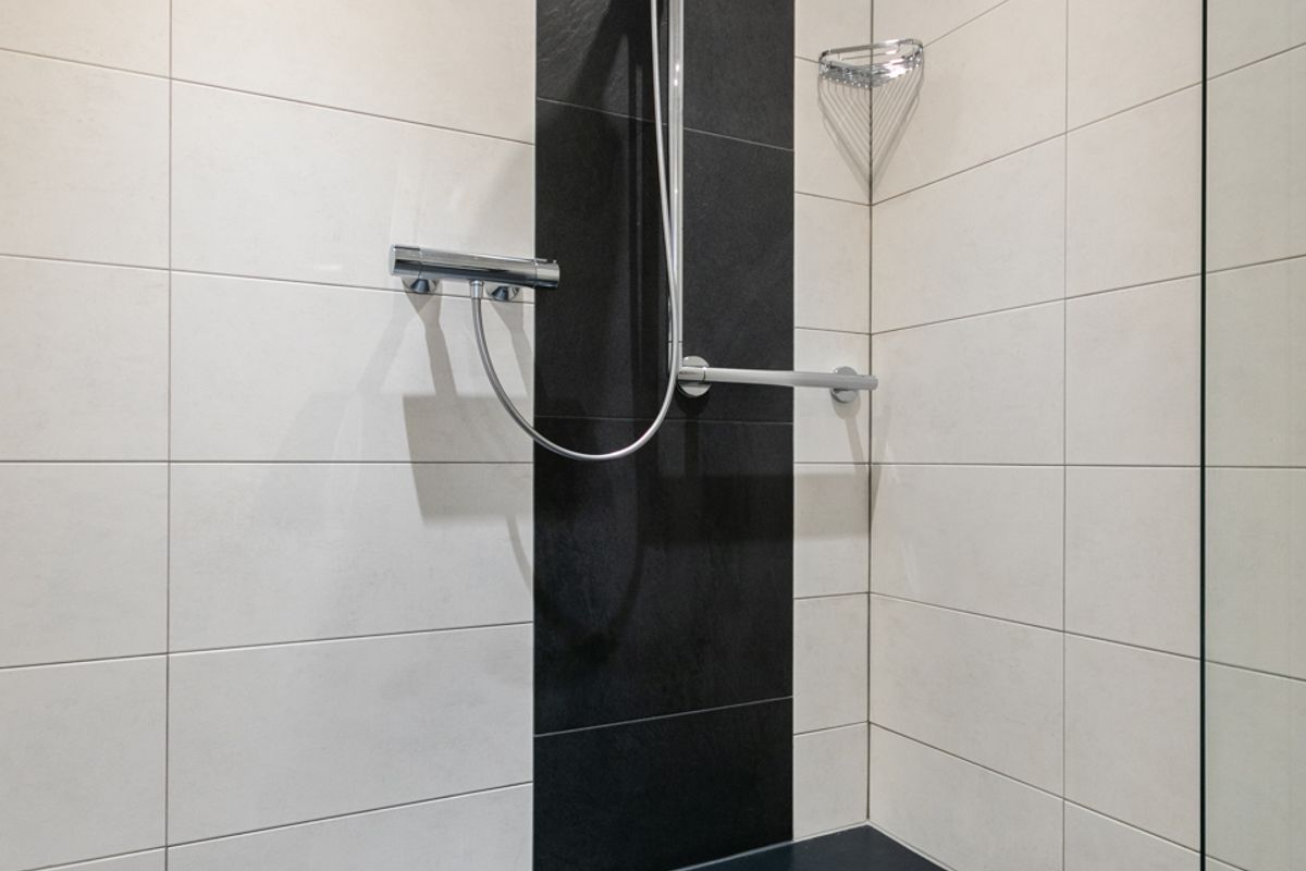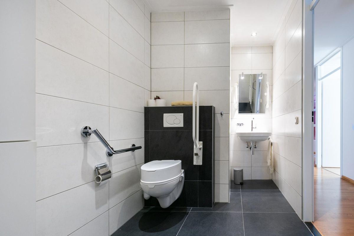 De moderne badkamer is voorzien van een toilet, wastafel en een ruime comfortabele inloopdouche. Een technische ruimte in het appartement doet tevens dienst als opbergruimte en is voorzien van een wasmachine-aansluiting.