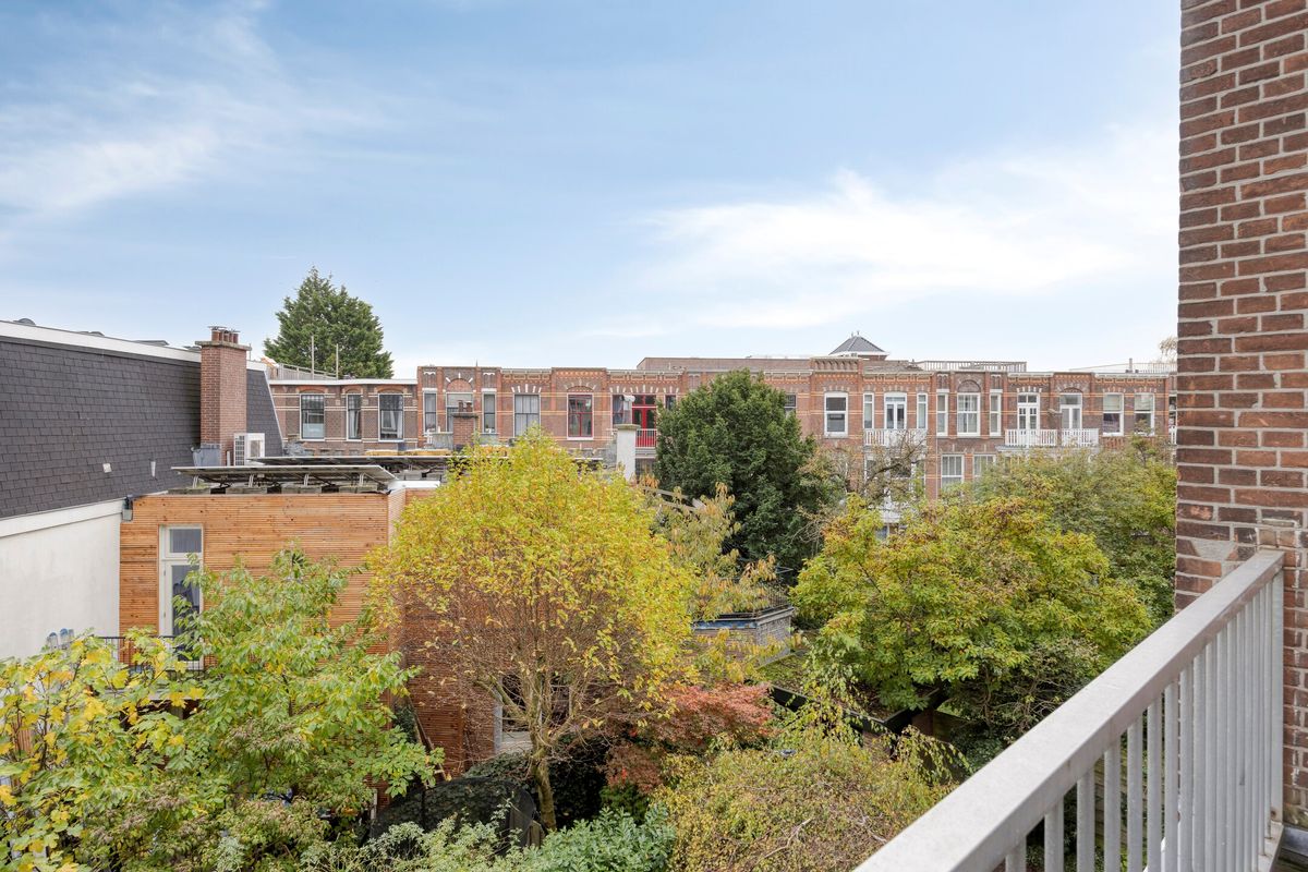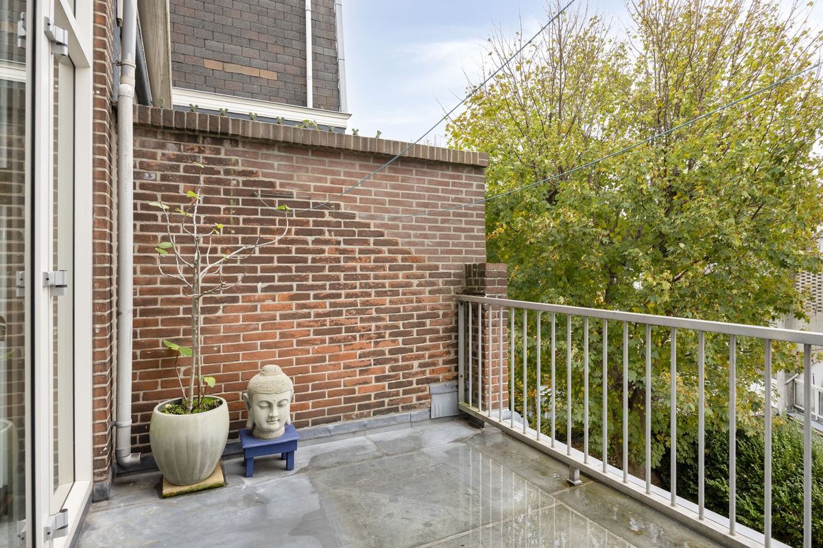 Een ruim terras aan de achterzijde (uitstekend geschikt voor ontspanning, buiten eten) én een balkon aan de voorzijde met uitzicht op de Valkenboslaan.