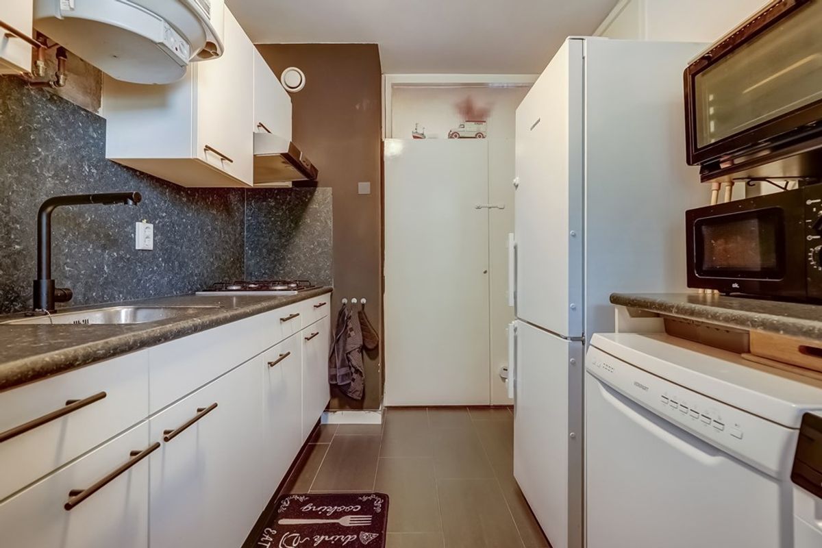 De keuken is praktisch ingedeeld en beschikt over een keukenblok met spoelbak, gaskookplaat, afzuigkap en vaste kast. Ook vind je hier de boiler en aansluitingen voor wasmachine en vaatwasser.