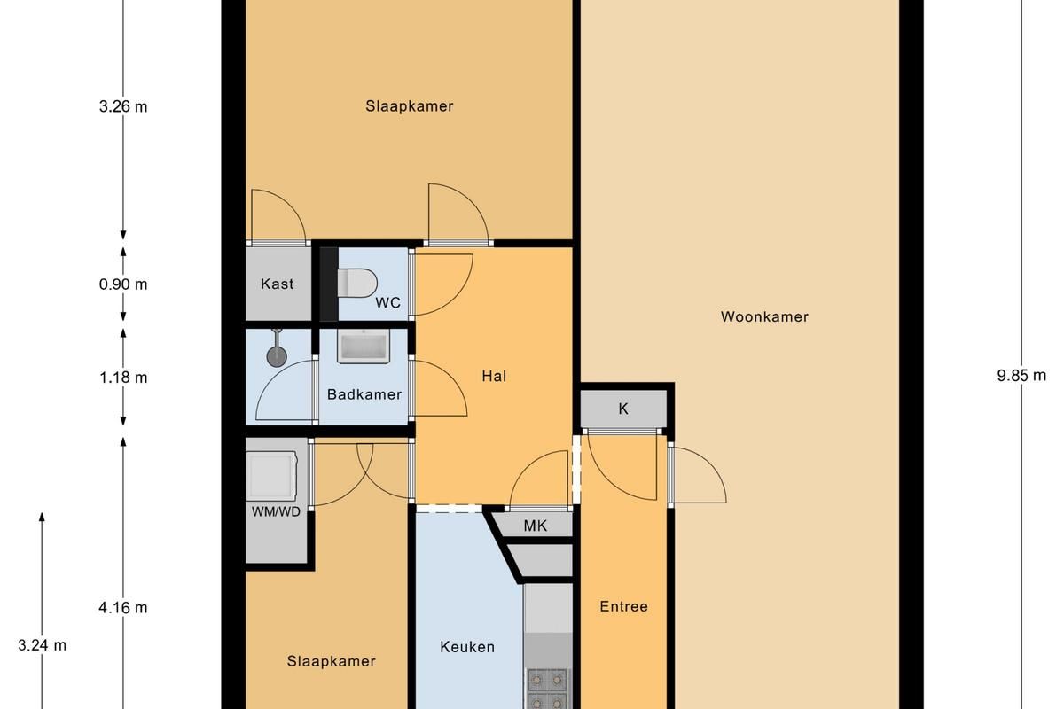 Vanuit de hal heb je toegang tot de twee slaapkamers, het toilet en de badkamer. De hoofdslaapkamer bevindt zich aan de rustige achterzijde en heeft een royale oppervlakte van ca. 12 m². Vanuit hier loop je via een deur zo het zonnige balkon op het westen op, waar je na een lange dag heerlijk kunt ontspannen in de avondzon. De tweede slaapkamer aan de voorzijde is ca. 8 m² groot en beschikt over een handige inbouwkast waar de wasmachine en warmwaterboiler zijn opgesteld. Beide kamers zijn perfect in te delen als slaapkamer, kinderkamer, werkkamer of hobbyruimte.
