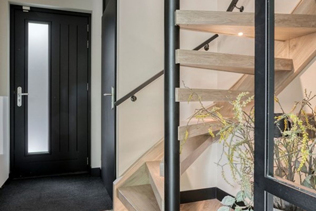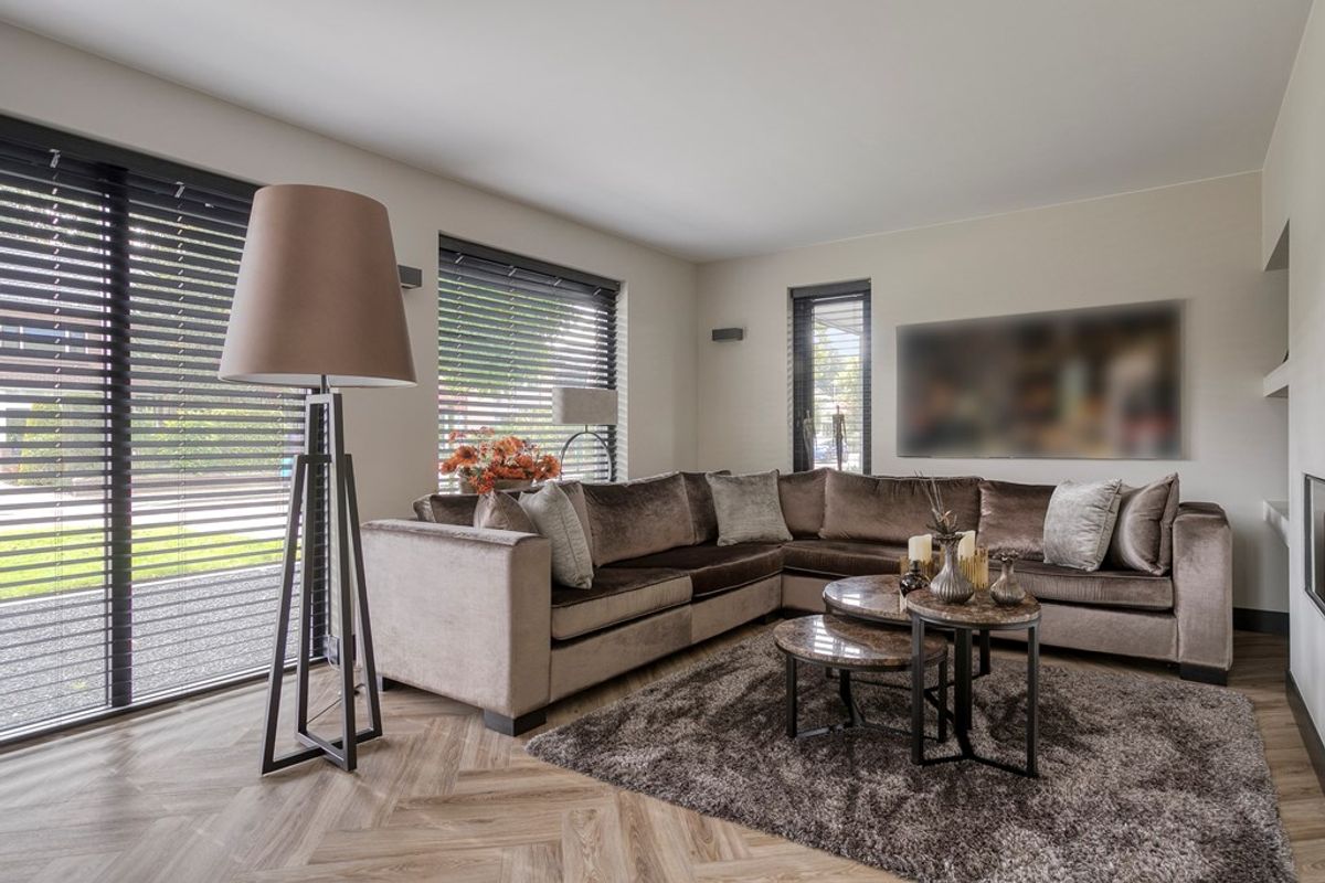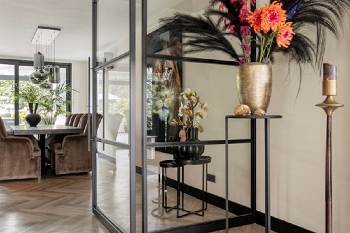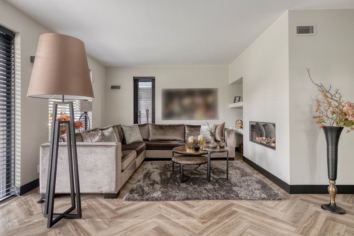 De entree zet meteen de toon: strak, modern en uitnodigend. Via de hal met toilet en trapopgang komt u middels een fraaie taatsdeur in de woonkamer, waar de grote ramen en openslaande deuren zorgen voor een overvloed aan licht. De visgraatvloer loopt drempelloos door en geeft de ruimte een chique uitstraling. De gashaard zorgt voor warmte en sfeer, terwijl de indeling uitnodigt om een gezellige zithoek te creëren. Aangrenzend vindt u de leefkeuken, gescheiden middels een stijlvolle wand. Een keuken die werkelijk alles heeft wat u van een moderne keuken mag verwachten: een riant kookeiland met barfunctie, sfeervolle verlichting en hoogwaardige apparatuur, waaronder een combi-oven, koffiemachine, inductiekookplaat met geïntegreerde afzuiging, koel- en vrieskast, Quooker en zelfs een wijnklimaatkast. Ook de keuken is voorzien van een gezellige sfeerhaard en er is airconditioning aanwezig. Vanuit de eetkamer heeft u uitzicht op de tuin en directe toegang tot het overdekte terras middels een schuifpui. De inpandige garage is tevens bereikbaar vanuit de keuken, wat het geheel praktisch maakt.