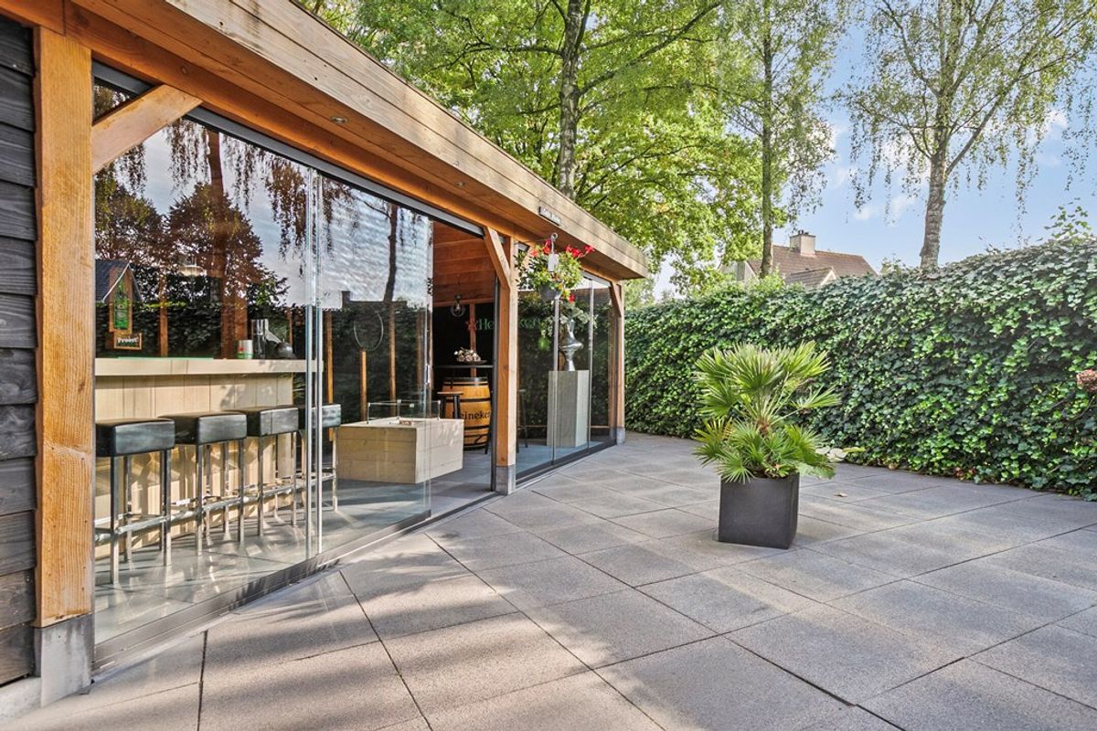 De achtertuin is zonder twijfel een van de grootste troeven van deze woning. Grenzend aan het water, met een prachtig groot terras en volop privacy, is dit een plek waar u het hele jaar door van geniet. Aan de waterkant kunt u heerlijk ontspannen in de zon, terwijl u dichter bij huis de beschutting vindt van het overdekte terras met lichtstraat. Het geweldige tuinhuis geeft de tuin een unieke extra dimensie: perfect voor lange avonden met vrienden of een knusse borrel in kleinere kring. De strakke bestrating, volwassen beplanting en sfeervolle details geven de tuin een luxe uitstraling, terwijl de palmbomen en hortensia’s zorgen voor een vleugje vakantiegevoel. Aan de voorzijde beschikt u over een carport, een ruime oprit en de inpandige garage.