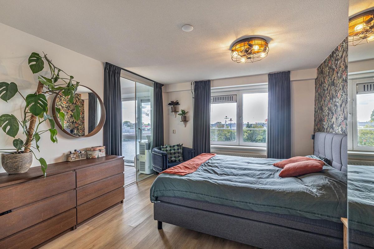 Loop je door, dan kom je in de zonnige woonkamer. Dankzij de grote raampartijen valt er veel daglicht binnen, wat de ruimte een prettige en open sfeer geeft. Vanuit de halbereik je de tweede slaapkamer, die voldoende ruimte biedt voor een tweepersoonsbeden (kleding-)kasten. Aansluitend aan deze kamer vind je een loggia die gebruikt kan worden als extra kamer of inloopkast.