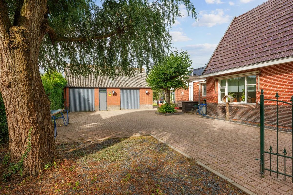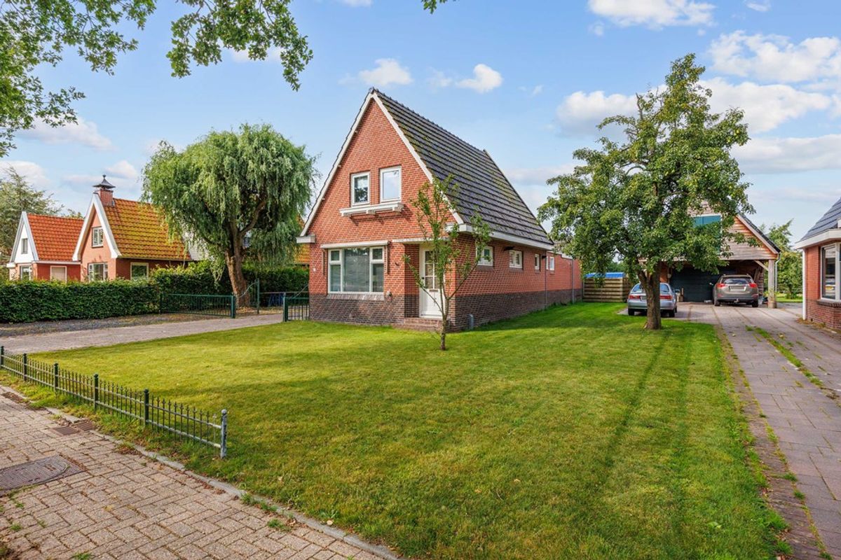 Aan de rand van het dorp vrijstaande woning met royale dubbele garage en ruime tuin.