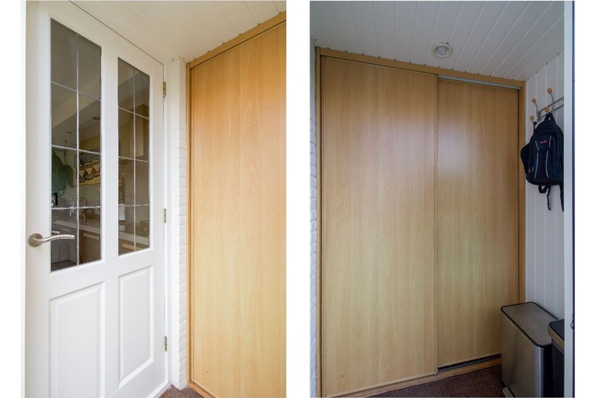 Via de entree betreed je de hal met meterkast, toiletruimte en toegang tot de woonkamer. Aan de voorzijde van de woning bevindt zich de ruime en lichte woonkamer. Vanuit hier loop je door naar de eetkamer en de open keuken, welke over de volledige breedte aan de achterzijde is gesitueerd. De keuken is voorzien van diverse inbouwapparatuur en biedt toegang tot de praktische bijkeuken met extra opbergruimte. Zowel vanuit de eetkamer als vanuit de bijkeuken zijn er deuren naar de achtertuin.