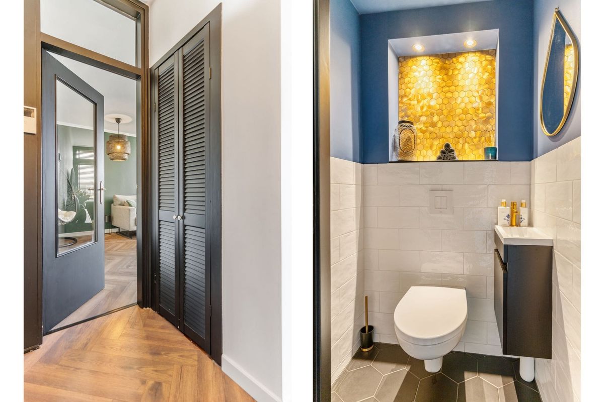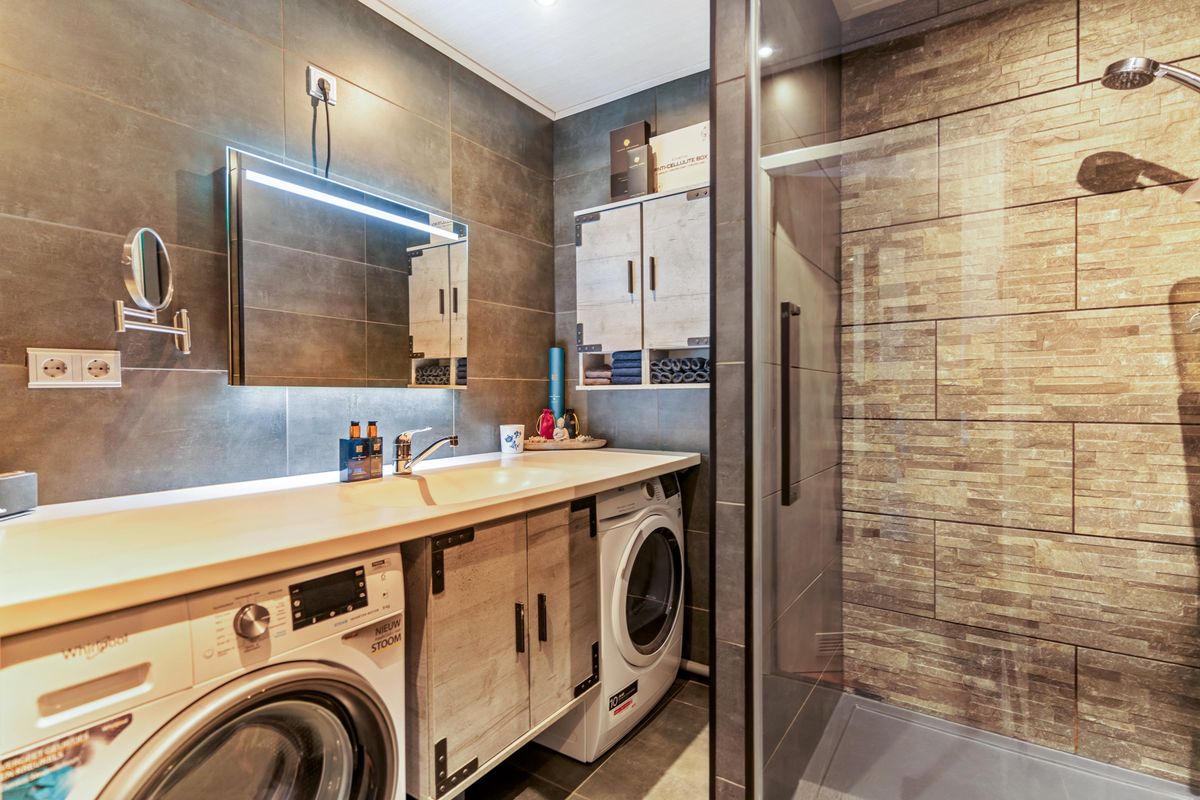 De badkamer is compact maar praktisch ingedeeld met douche, wastafelmeubel en wasmachineaansluiting. Het toilet is separaat en netjes betegeld en tevens in 2020 helemaal vernieuwd!