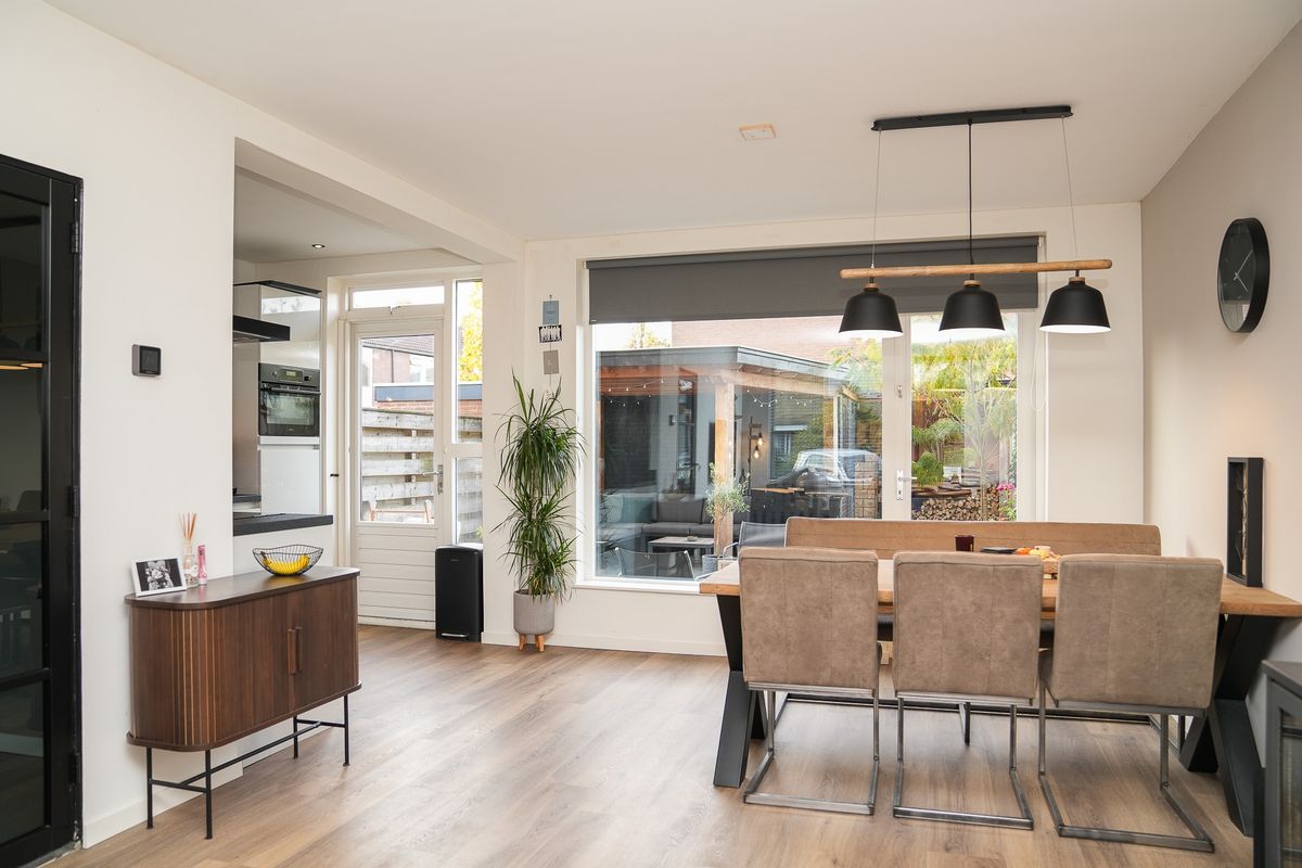 Deze goed onderhouden tussenwoning is in 2021 gemoderniseerd en in 2024 voorzien van 8 zonnepanelen. De afwerking is strak, de ruimtes zijn licht en praktisch ingedeeld. Aan de achterzijde ligt de open keuken met uitzicht op de tuin en directe toegang naar buiten. De woonkamer is sfeervol ingericht, met aan de voorzijde een gezellige zithoek en centraal in de ruimte een houtkachel – een fijne plek om te ontspannen. Achter het huis ligt een onderhoudsvriendelijke tuin met een ruime berging en overkapping. Met drie slaapkamers én een grote zolder heb je hier alles in huis voor comfortabel wonen.