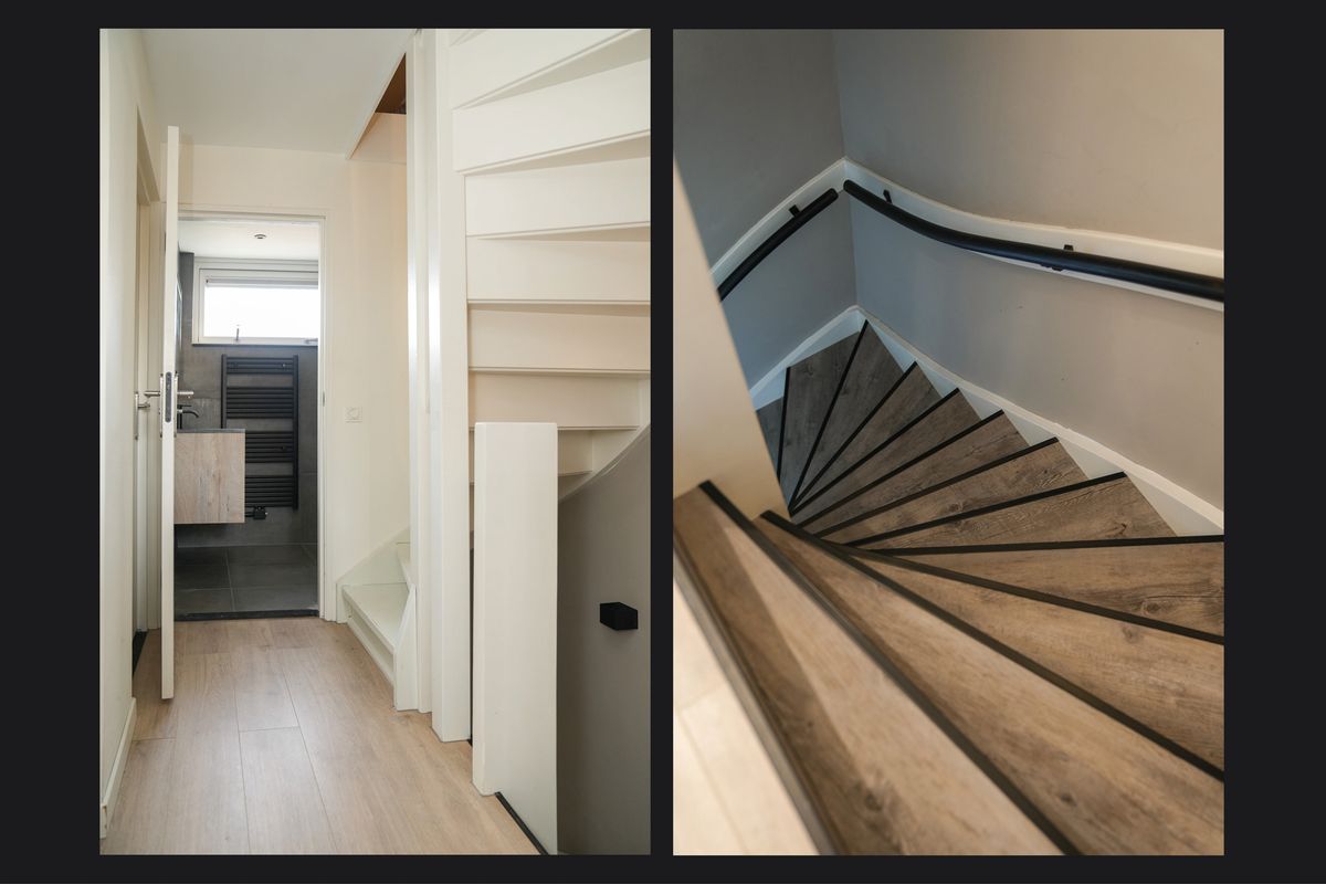 Een vaste trap leidt naar de ruime zolderverdieping waar plek is voor de wasmachine en droger. Dankzij het dakraam is het ook een lichte ruimte. Of je nu een hobbyruimte, logeerkamer of thuiskantoor zoekt: deze verdieping is klaar voor gebruik.