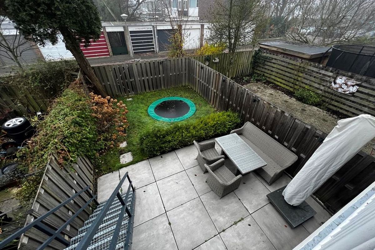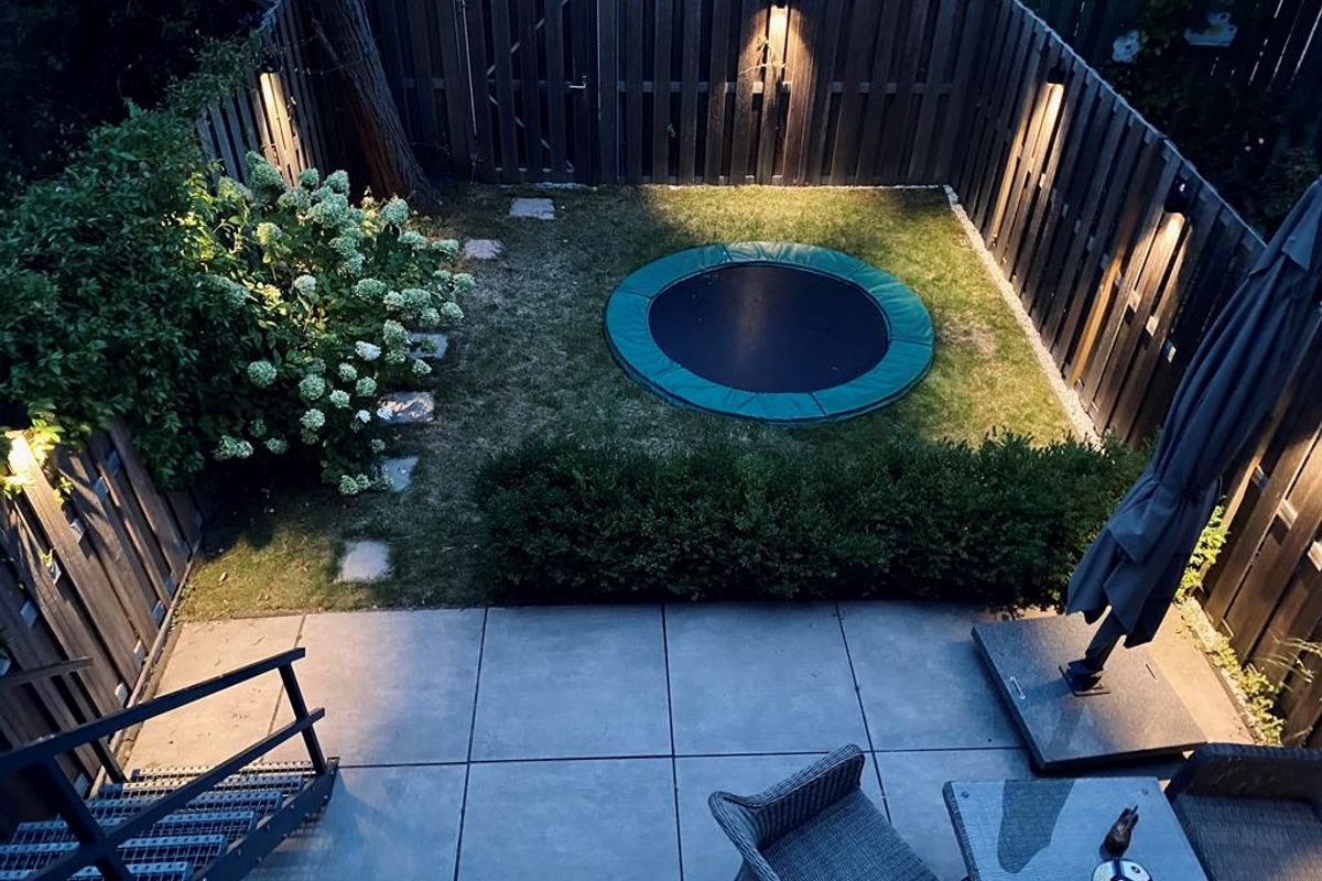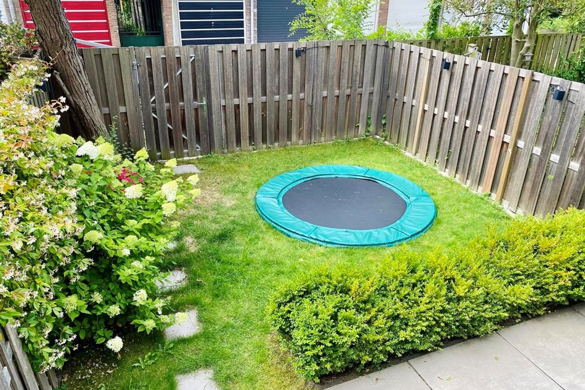 With a living area of 120 m², it offers plenty of space and comfort. The first floor boasts a lot of natural light through its large windows and an open living space that combines the sitting, dining, and open kitchen areas. The home has three bedrooms, all conveniently located on the same floor, which also hosts a modern bathroom with a walk-in shower and a separate toilet. The ground floor provides storage and laundry space, as well as a garage with two Batavus bikes ready for rides. Finally, it features an urban garden with a built-in trampoline, outdoor seating, and lighting, making it great for kids to play in or to enjoy during the warm and long Amsterdam summer nights.