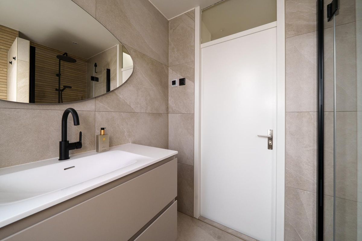 * De moderne badkamer is in 2024 geheel vernieuwd en voorzien van een douchecabine, wastafel en het toilet en vloerverwarming.